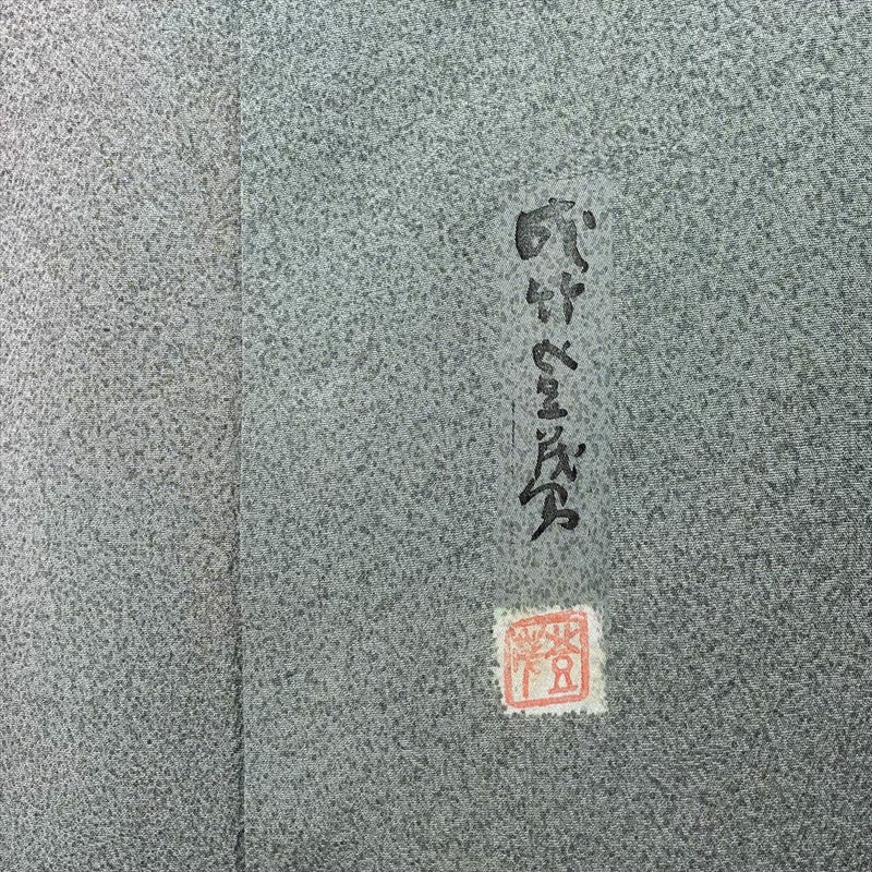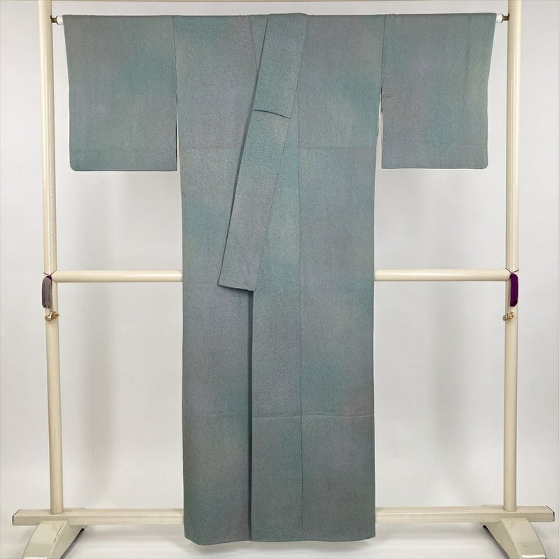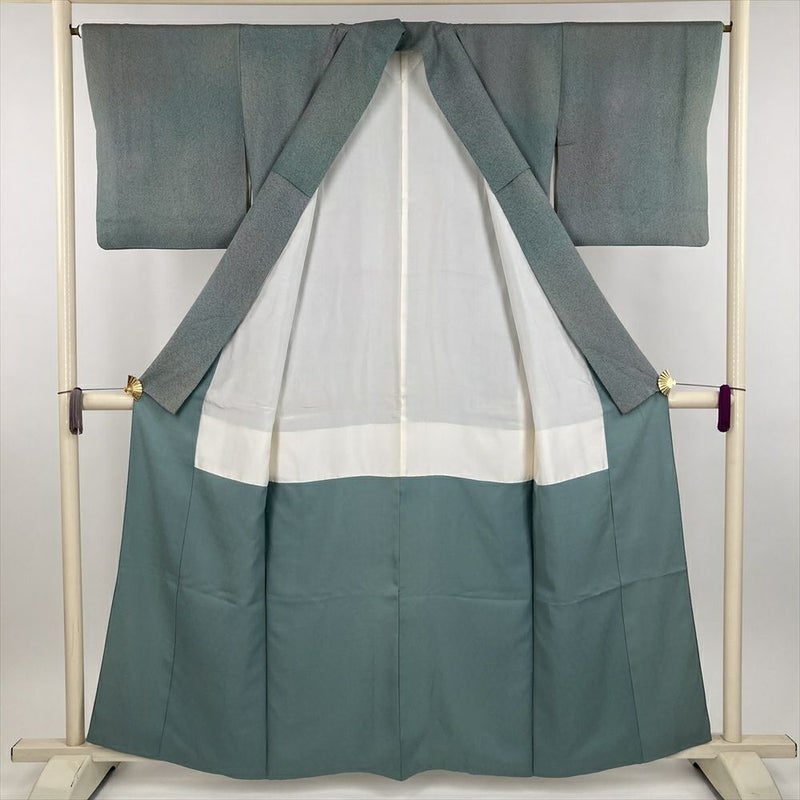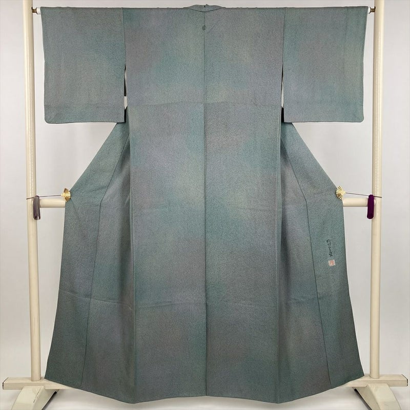(中古) 小紋 灰青緑 カジュアル セミフォーマル 成竹登茂男 吹雪 グラデーション 袷 絹【身丈】154cm【裄丈】64.5cm
