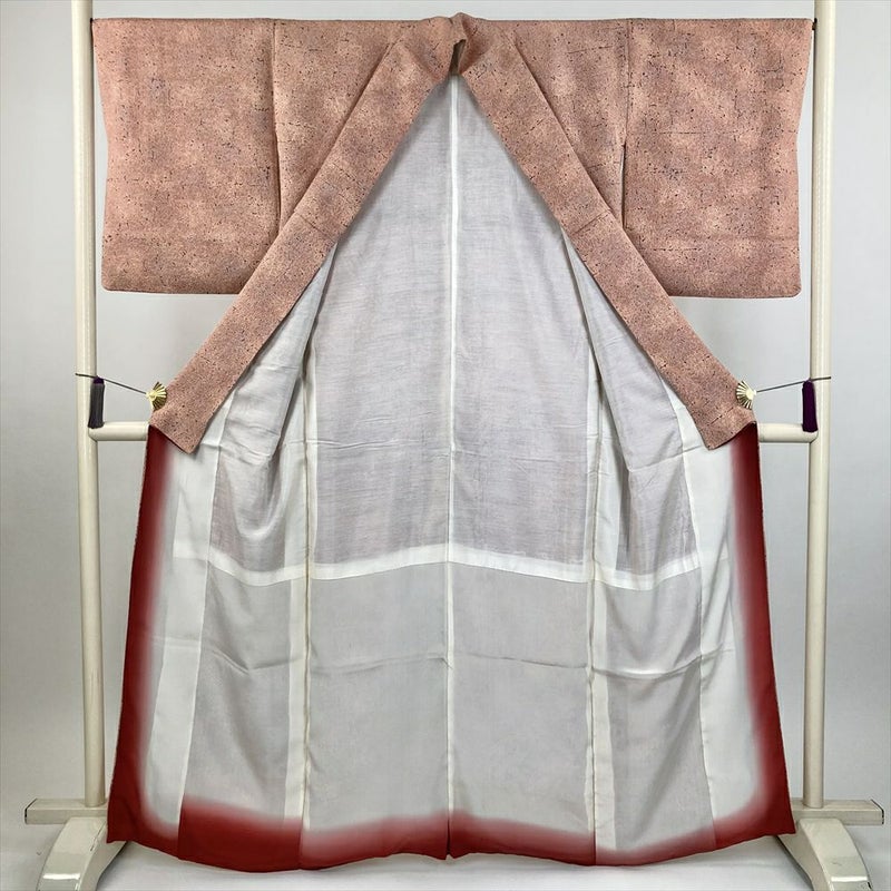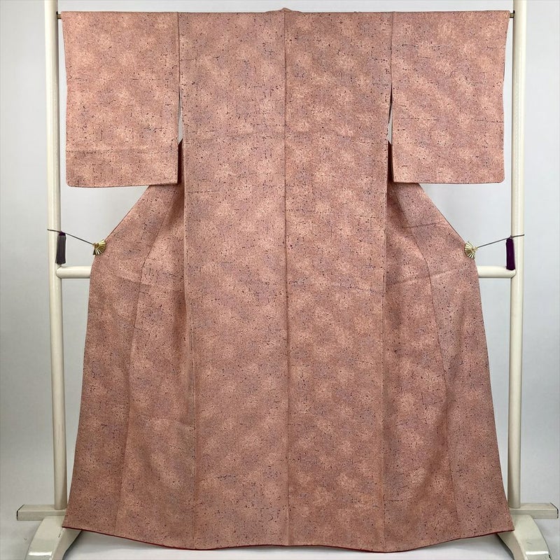 (中古) 小紋 珊瑚色 コーラルピンク カジュアル 地紋織 陶彩染 袷 絹 【身丈】159.5cm【裄丈】66.5cm