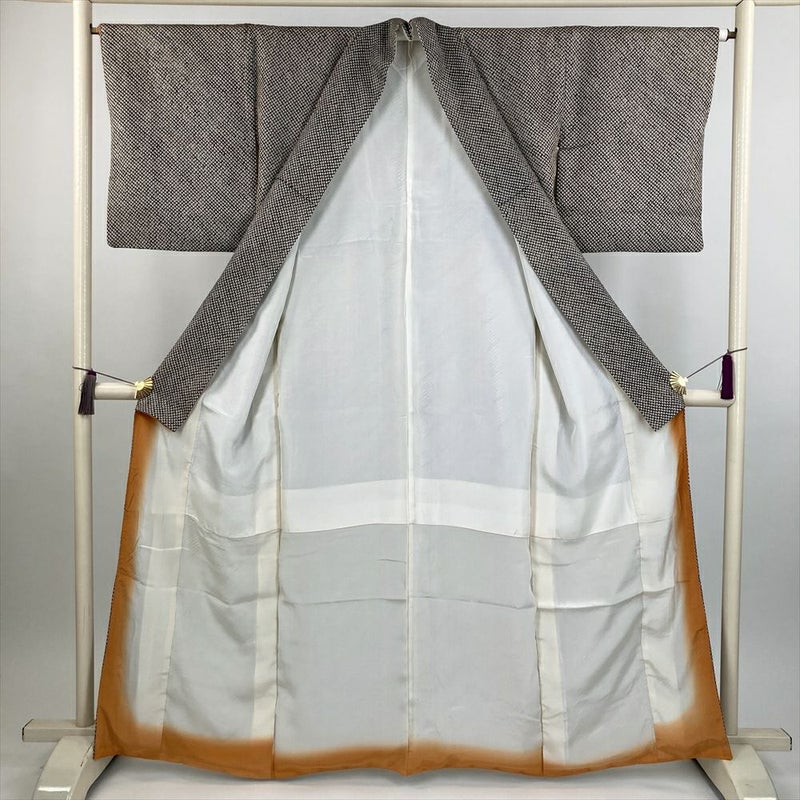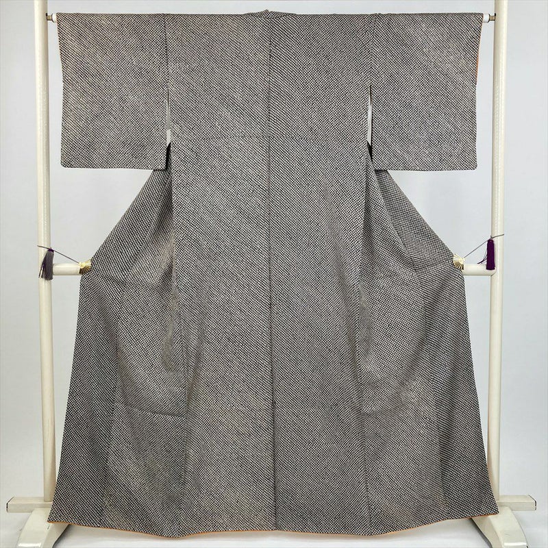 (中古) 小紋 黒 カジュアル 総絞り 袷 絹 【身丈】157cm【裄丈】65cm