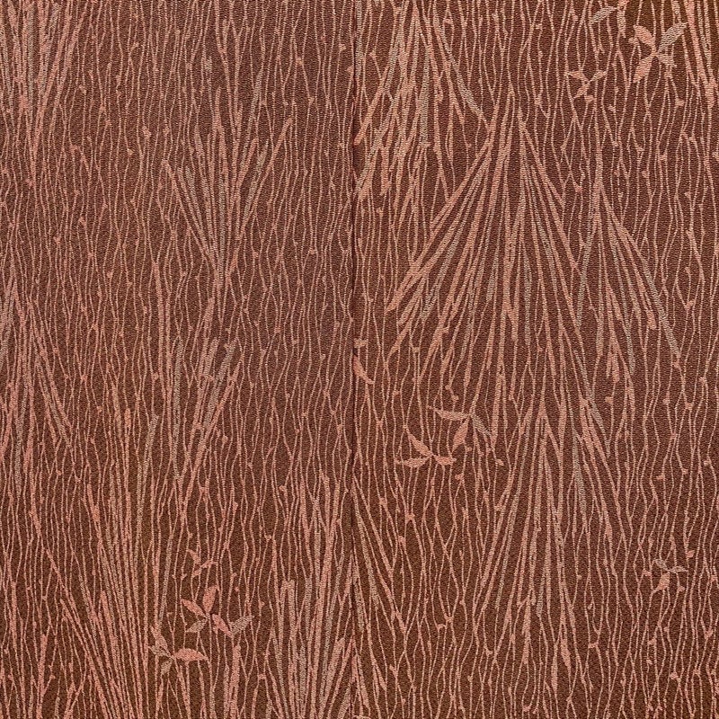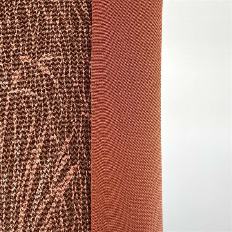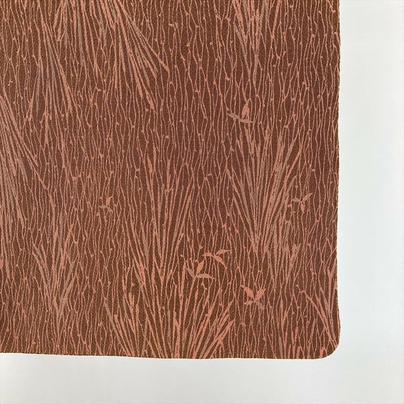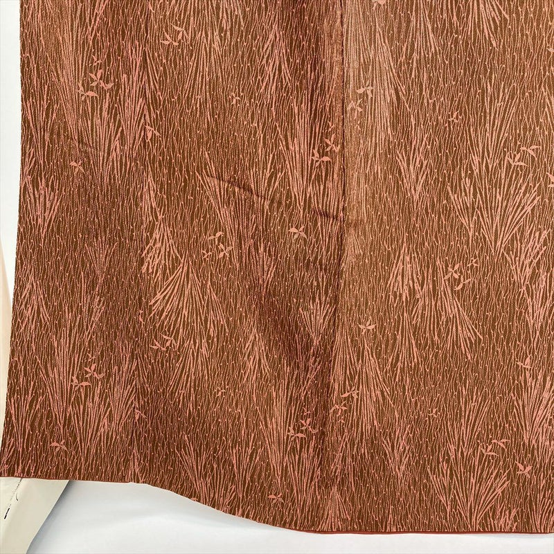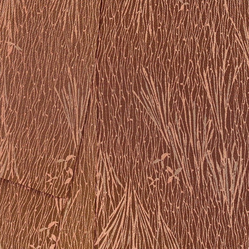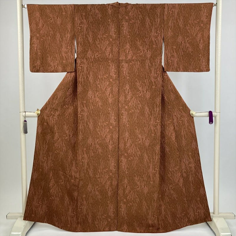 (中古) 小紋 茶 カジュアル 草花 袷 絹【身丈】158cm【裄丈】66cm