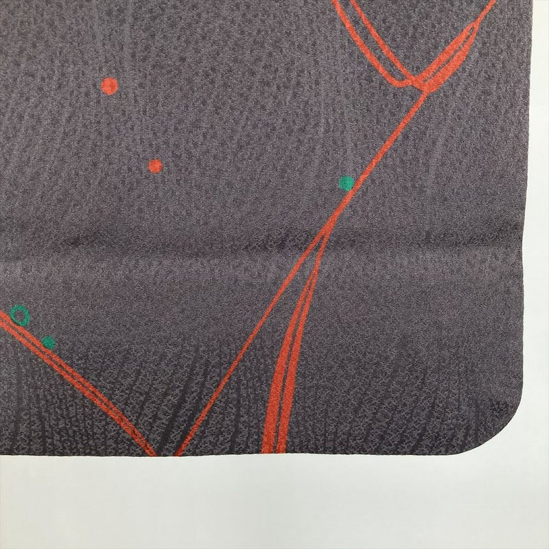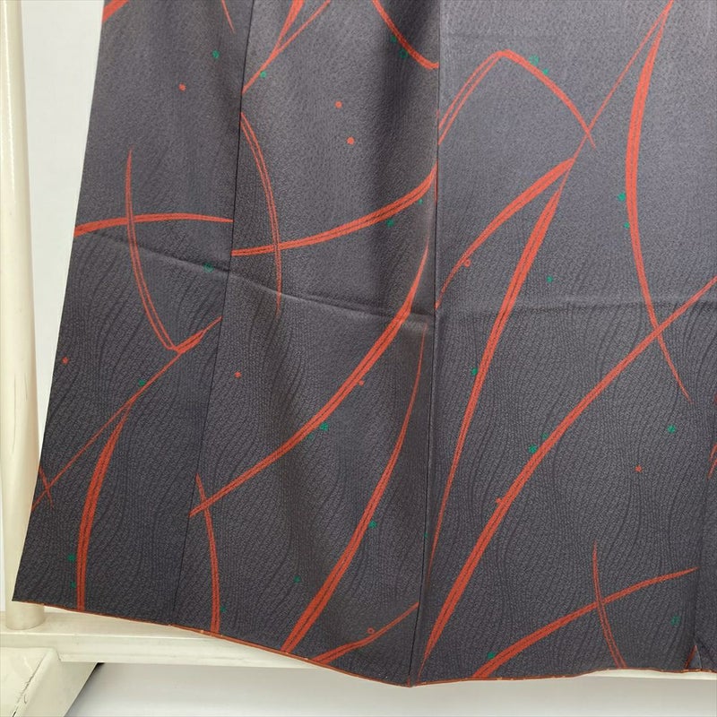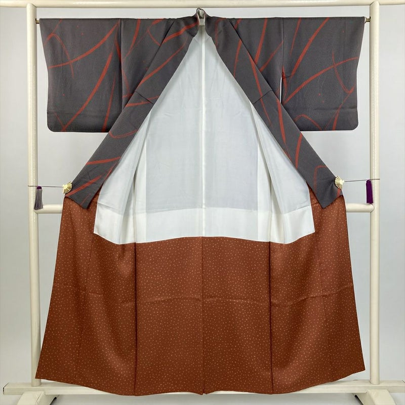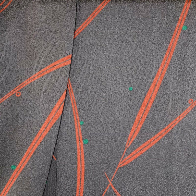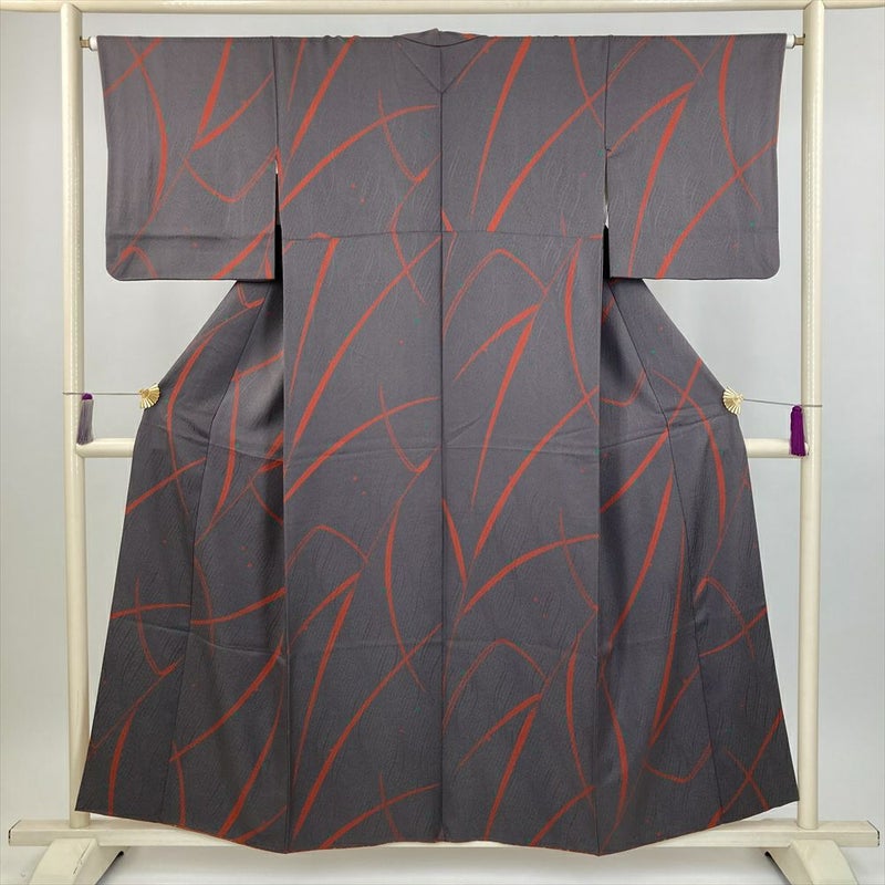 (中古) 小紋 濃灰 グレー カジュアル 露 草 袷 絹 【身丈】149.5cm【裄丈】65cm