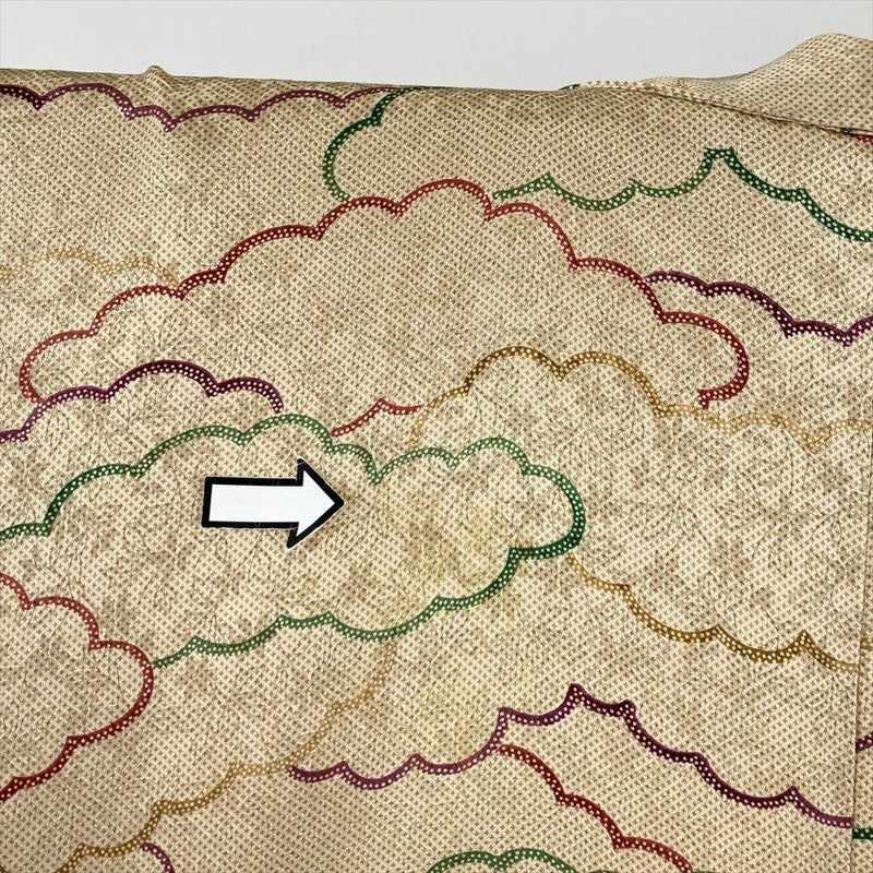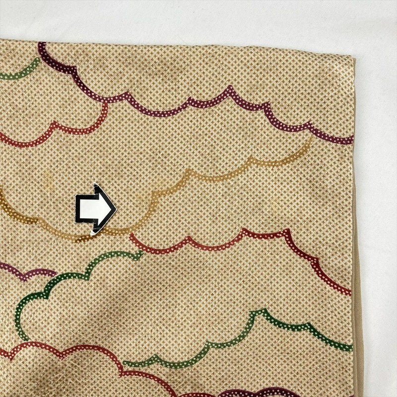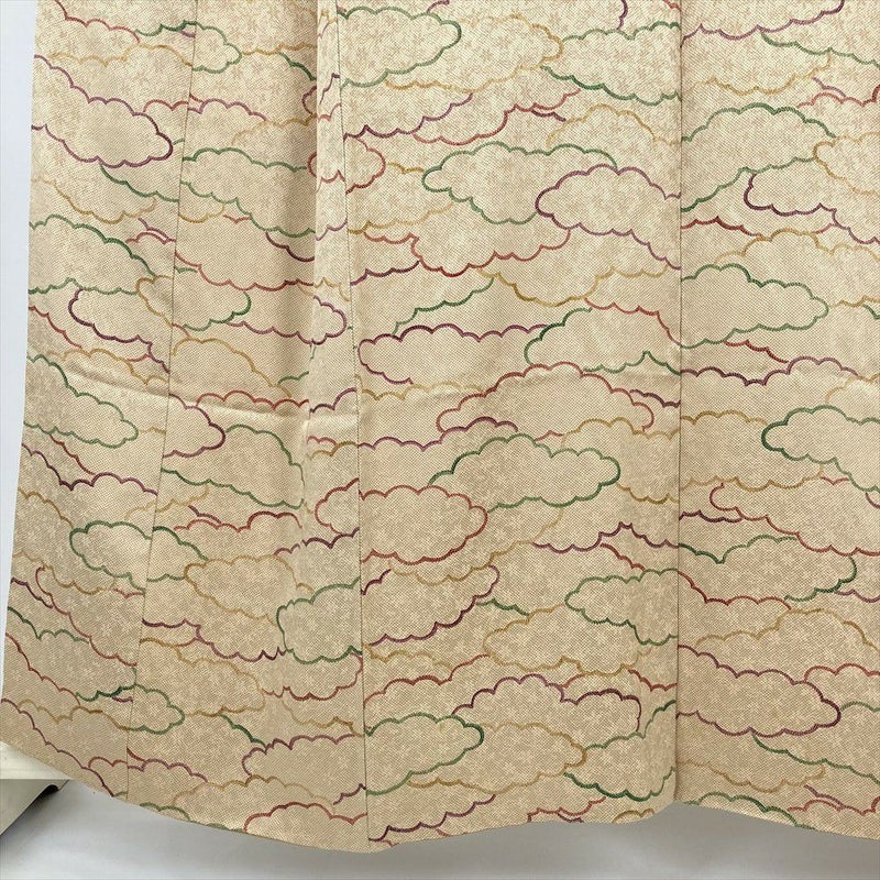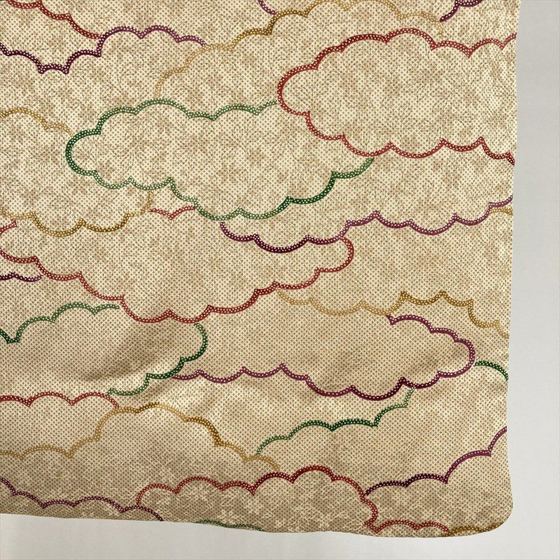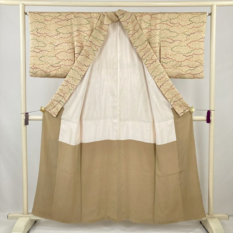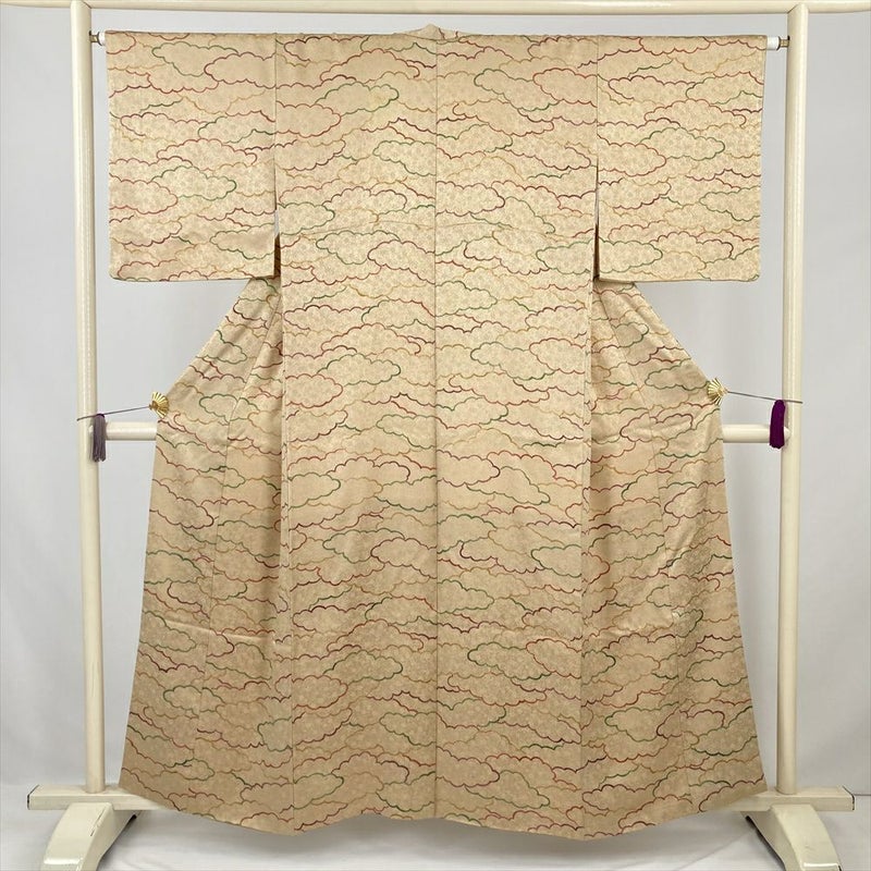 (中古) 小紋 薄茶 ベージュ カジュアル 雲文 袷 絹 【身丈】152cm【裄丈】65cm