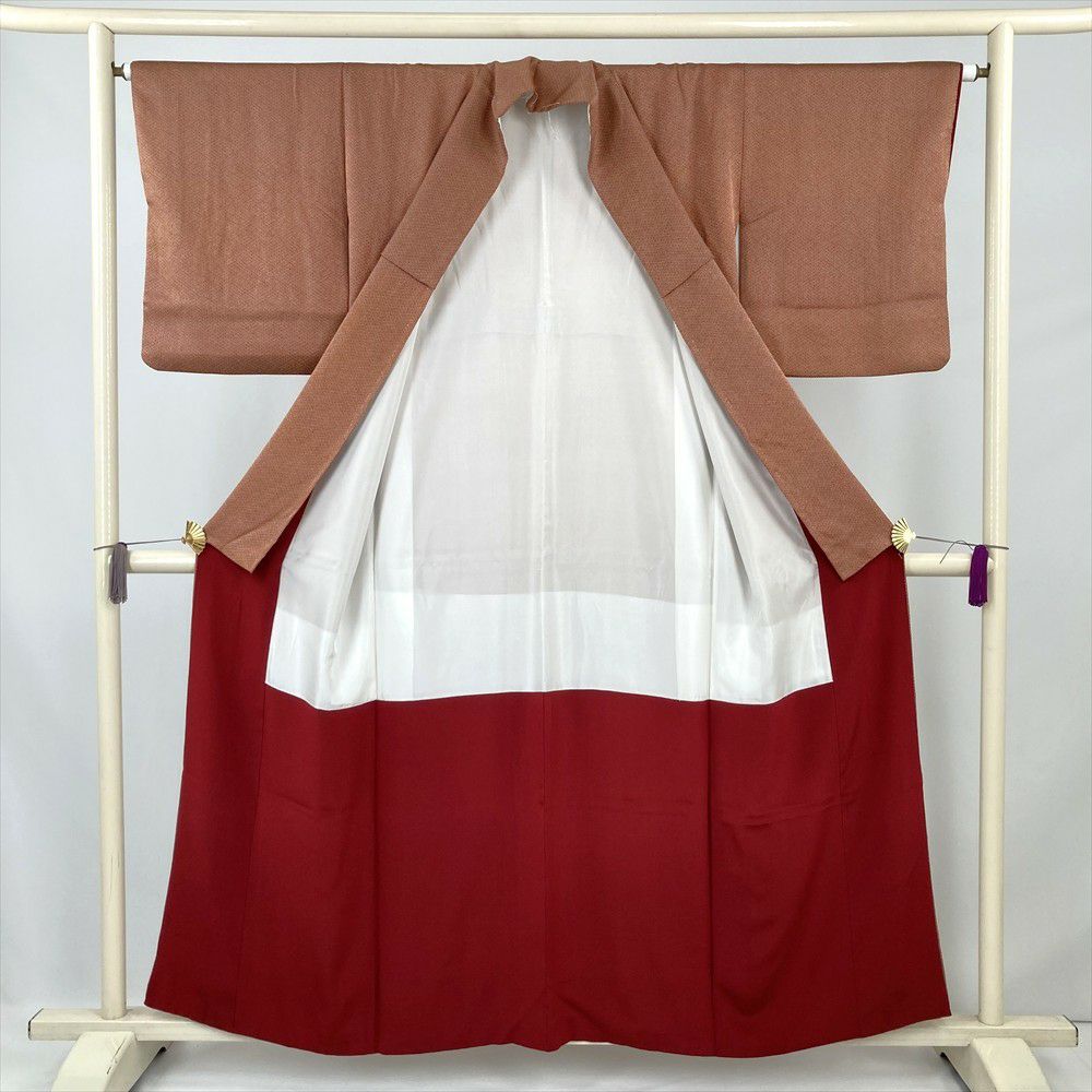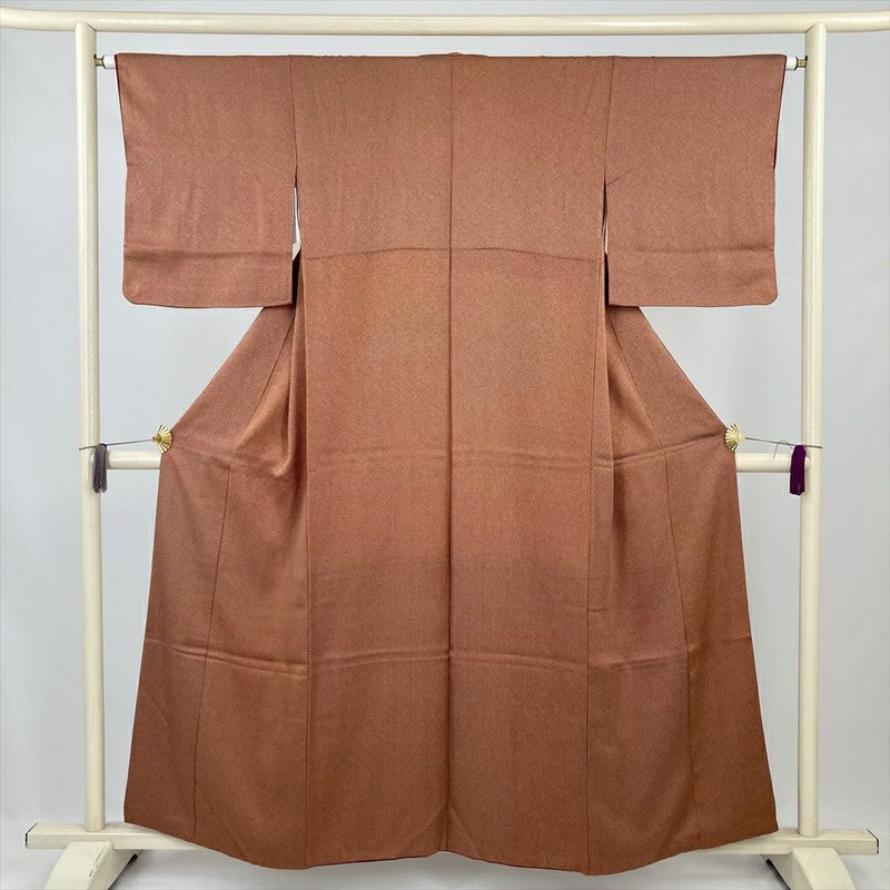 (中古) 小紋 赤茶 カジュアル 花菱 袷 絹 【身丈】151.5cm【裄丈】63.5cm