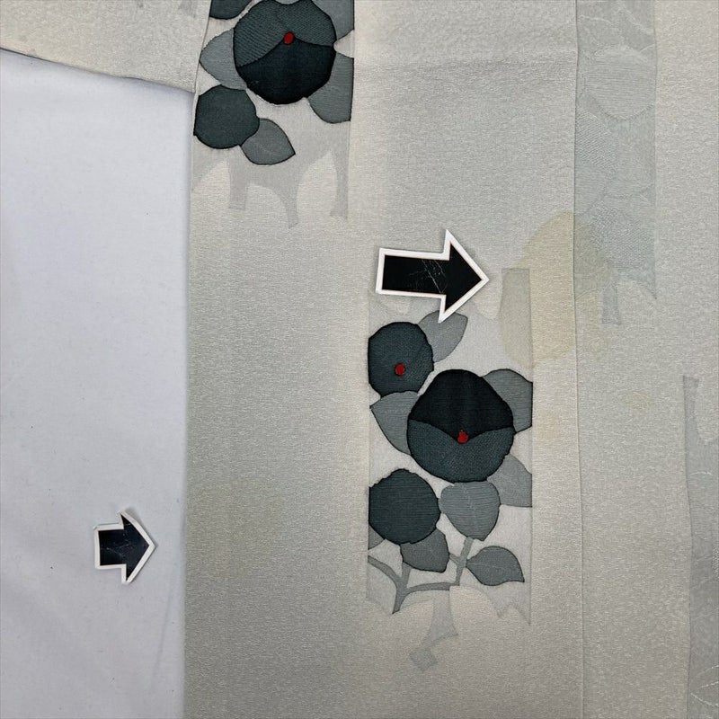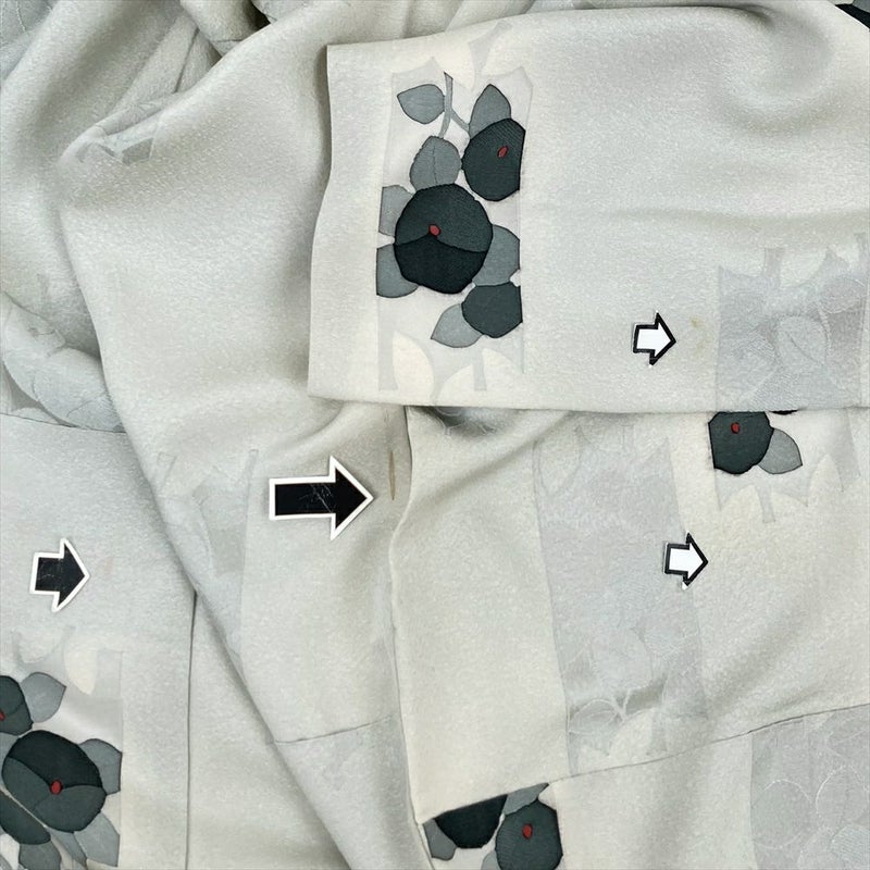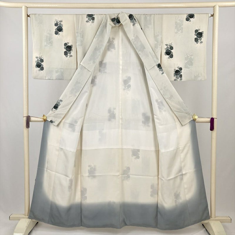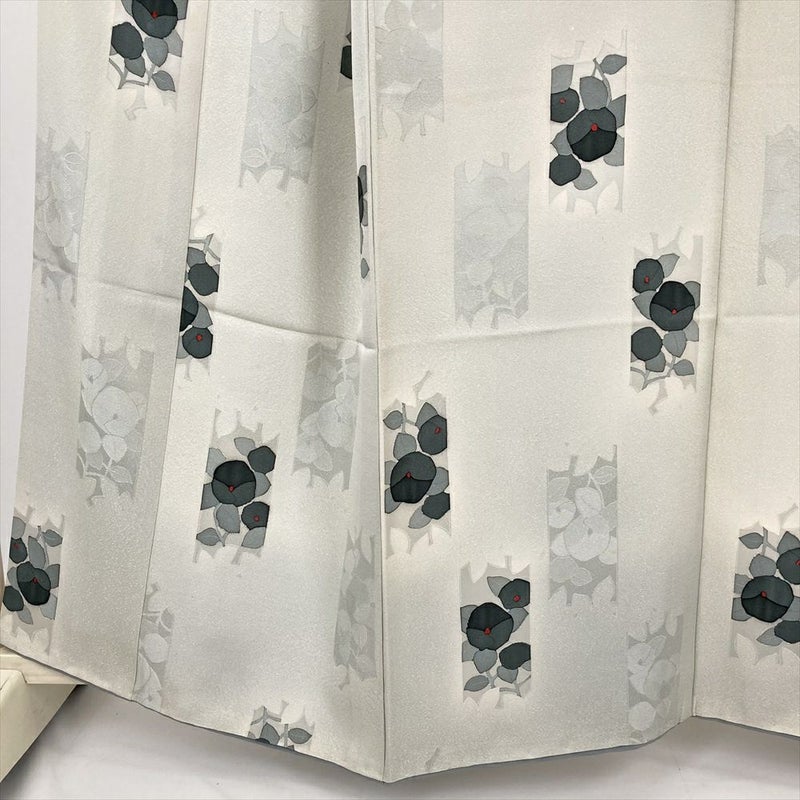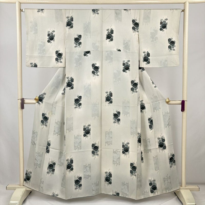 (中古) 小紋 白鼠 グレー カジュアル 椿 袷 絹【身丈】154cm【裄丈】64.5cm
