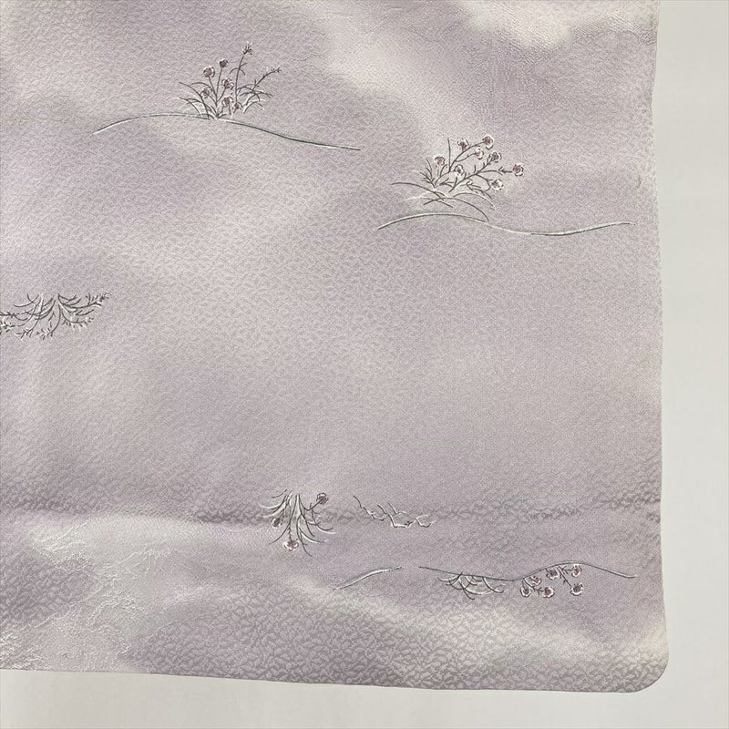 (中古) 小紋 薄紫 カジュアル 野の花 袷 絹【身丈】151cm【裄丈】65cm