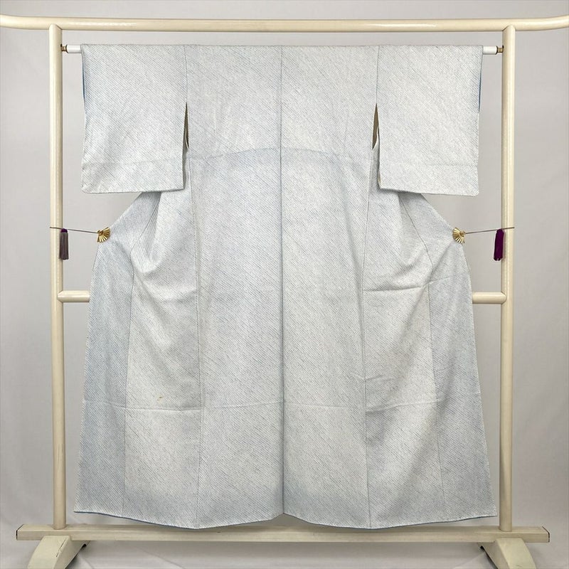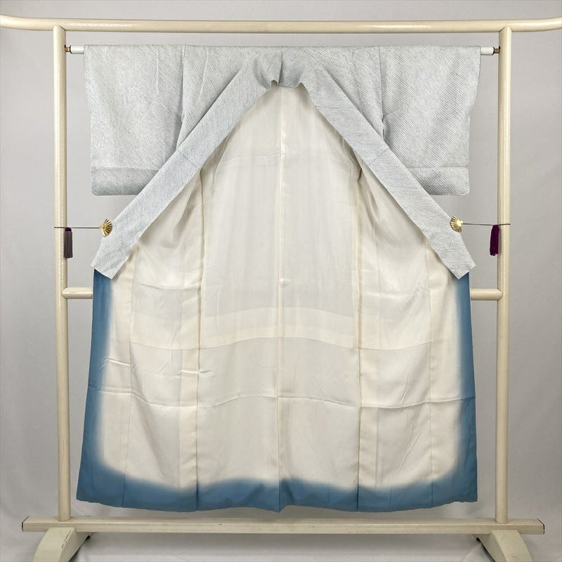 (中古) 小紋 水色 カジュアル 総鹿の子絞り 袷 絹 【身丈】148cm【裄丈】61cm