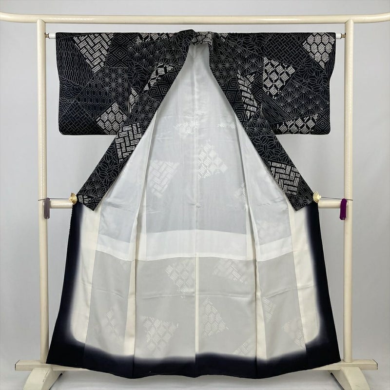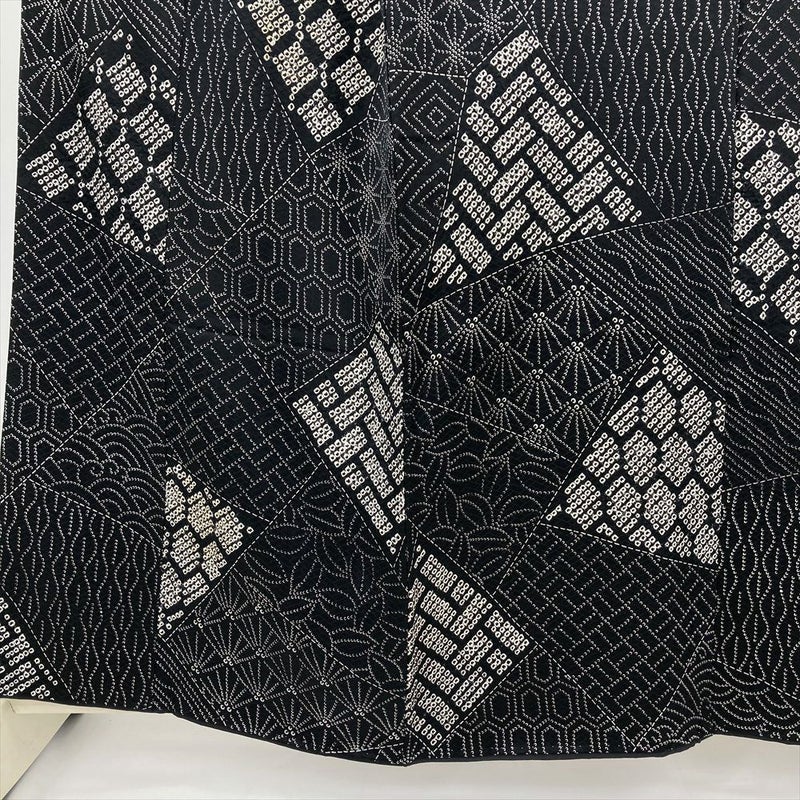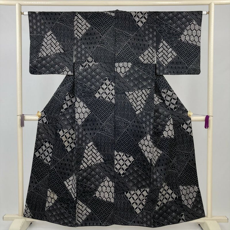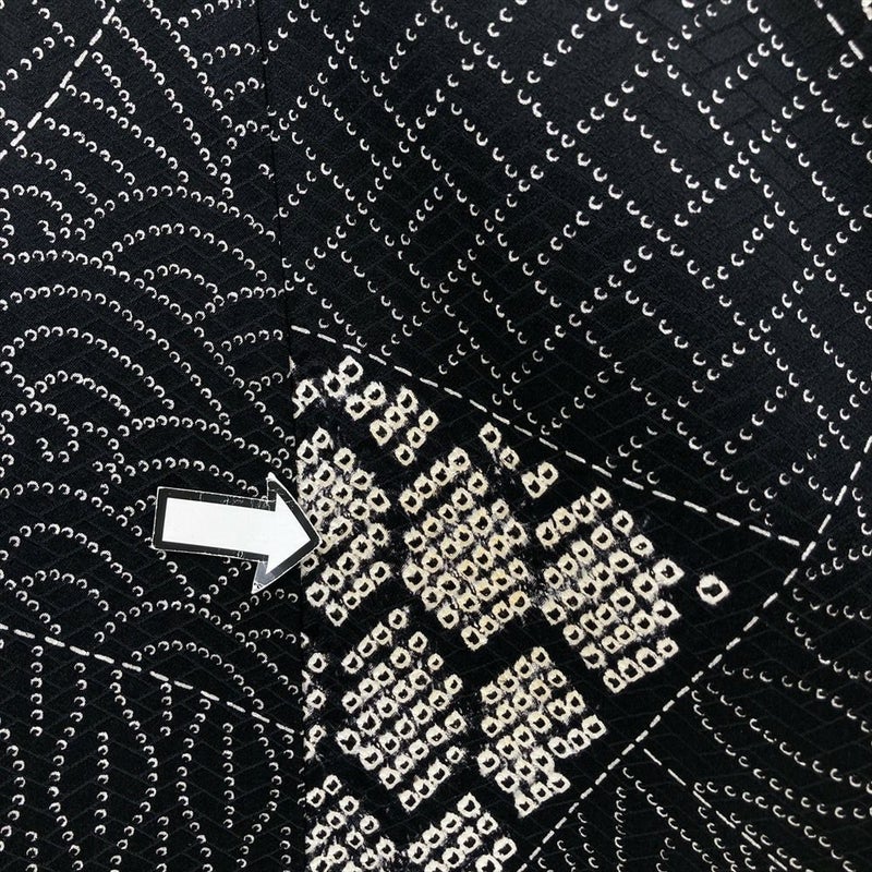 (中古) 小紋 黒 カジュアル 吉祥文 袷 絹 【身丈】153cm【裄丈】64cm