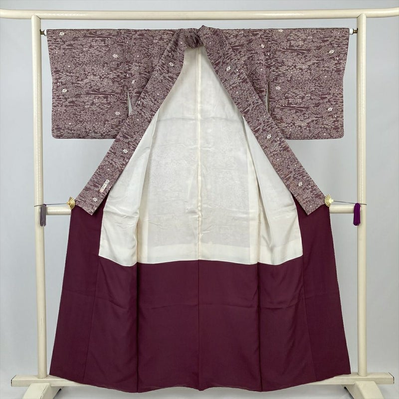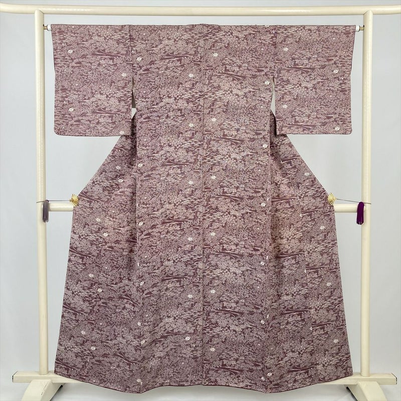 (中古) 小紋 赤紫 カジュアル 南部芳松 袷 絹【身丈】153.5cm【裄丈】64.5cm