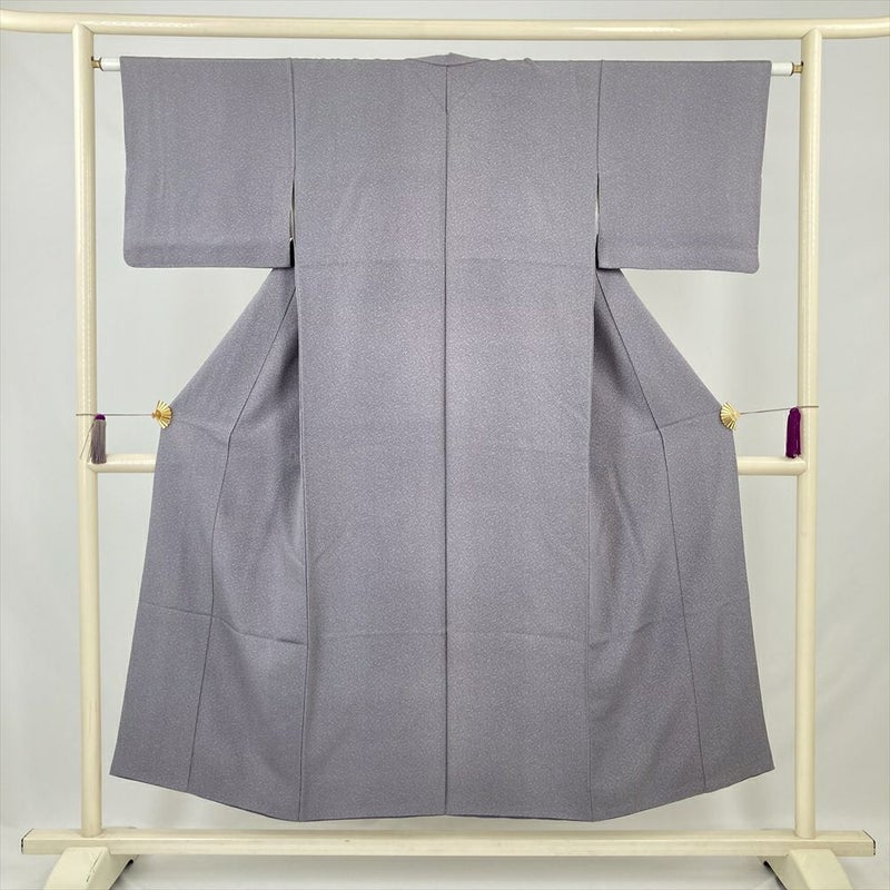 落ち着いた灰紫色の地に、伊勢型の細やかな柄がすっきりと配置された小紋です。