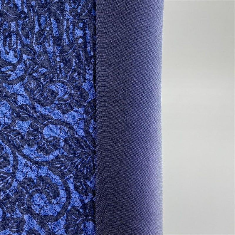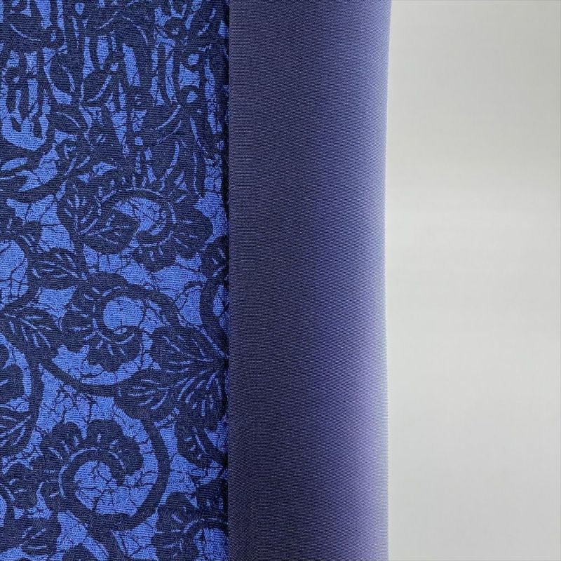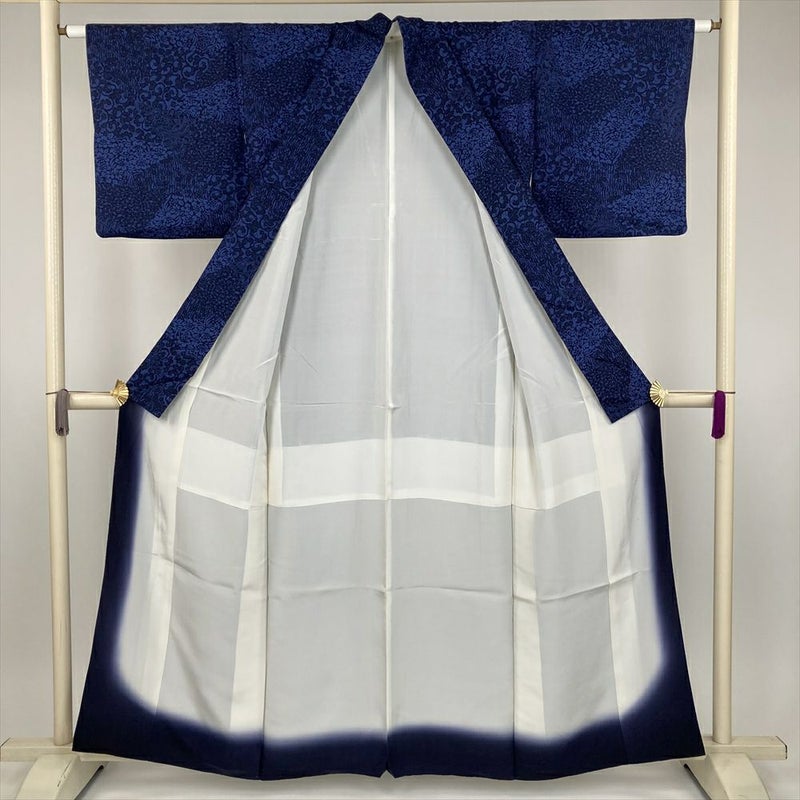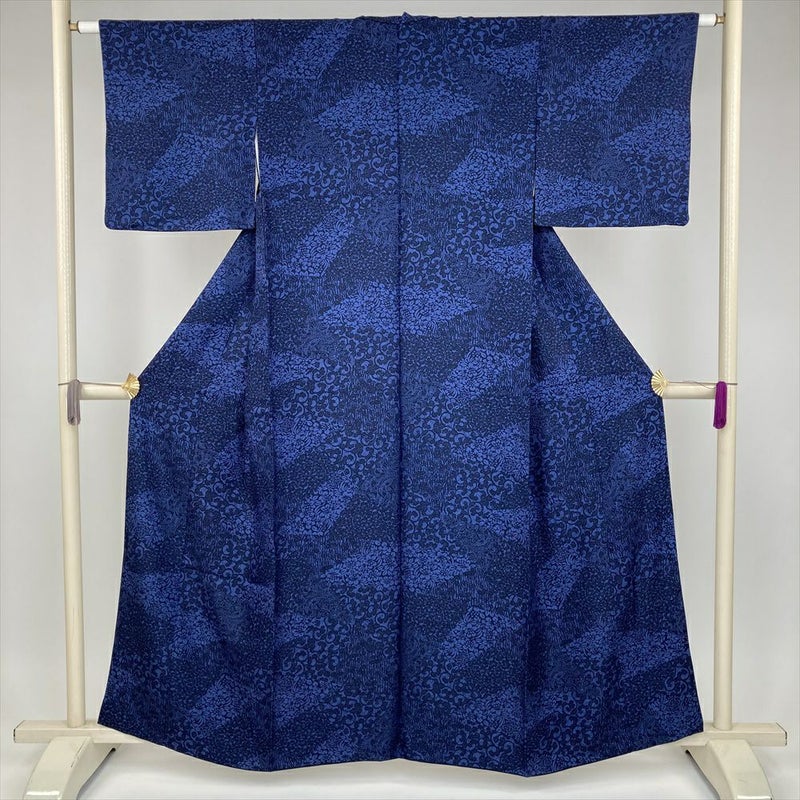 紺系の深い色合いが、文様を一層引き立て、上品さと個性を演出します。