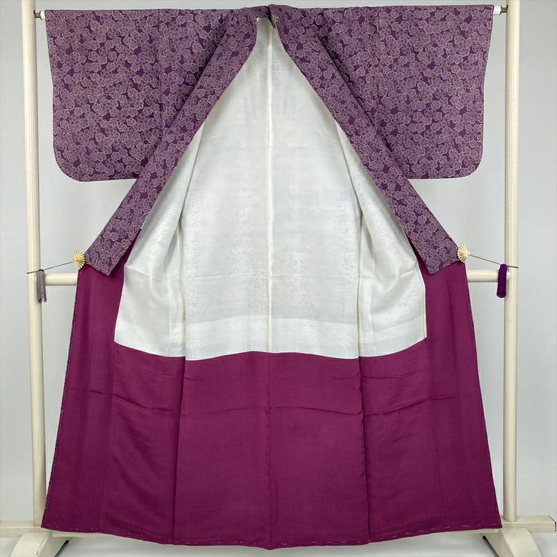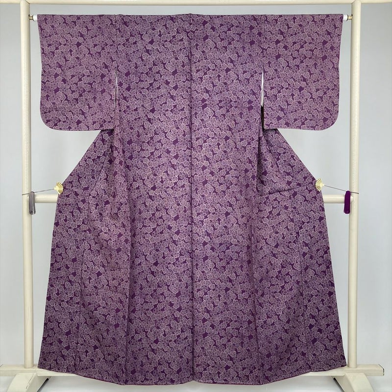 (中古) 小紋 京紫 カジュアル ねじ梅 袷 絹【身丈】155.5cm【裄丈】64.5cm