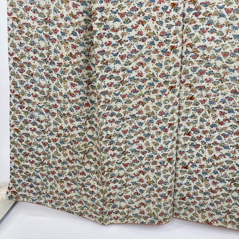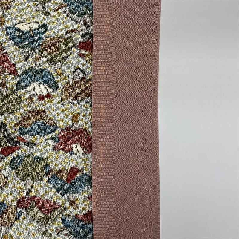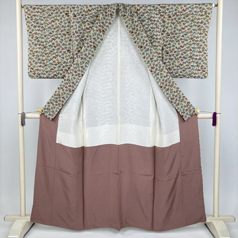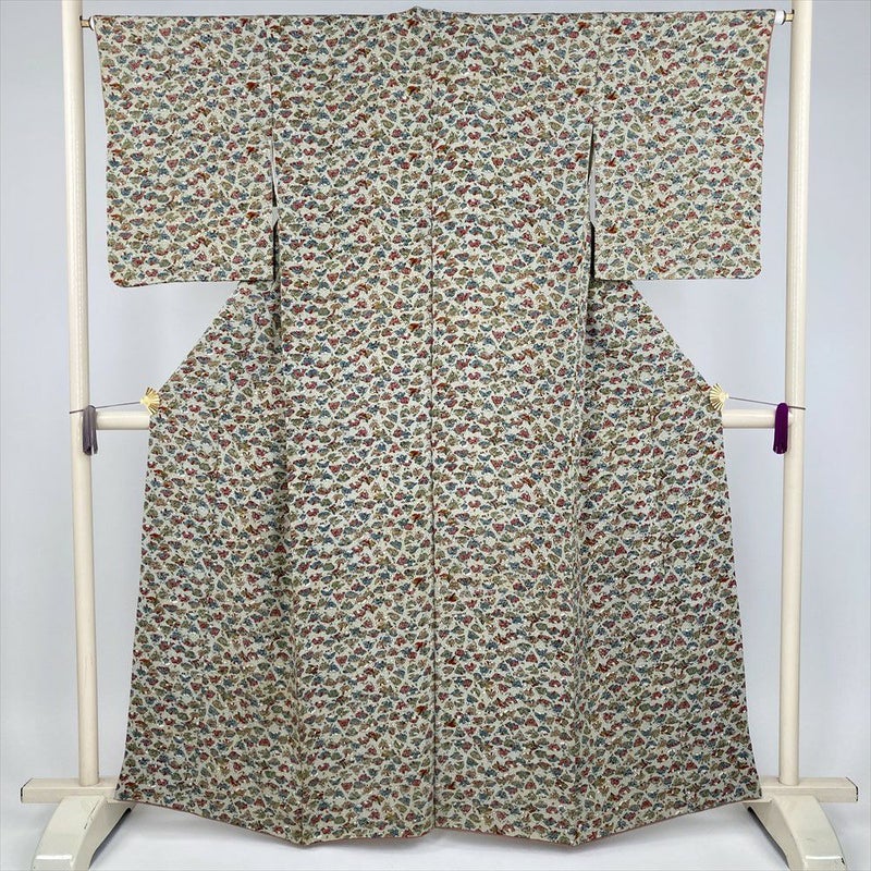 (中古) 小紋 白藍 薄緑 カジュアル 平安歌人 袷 絹【身丈】154cm【裄丈】65.5cm