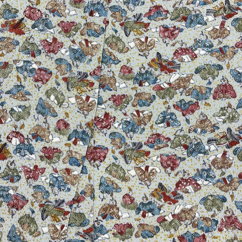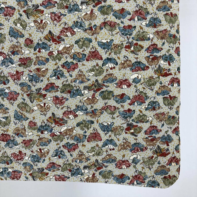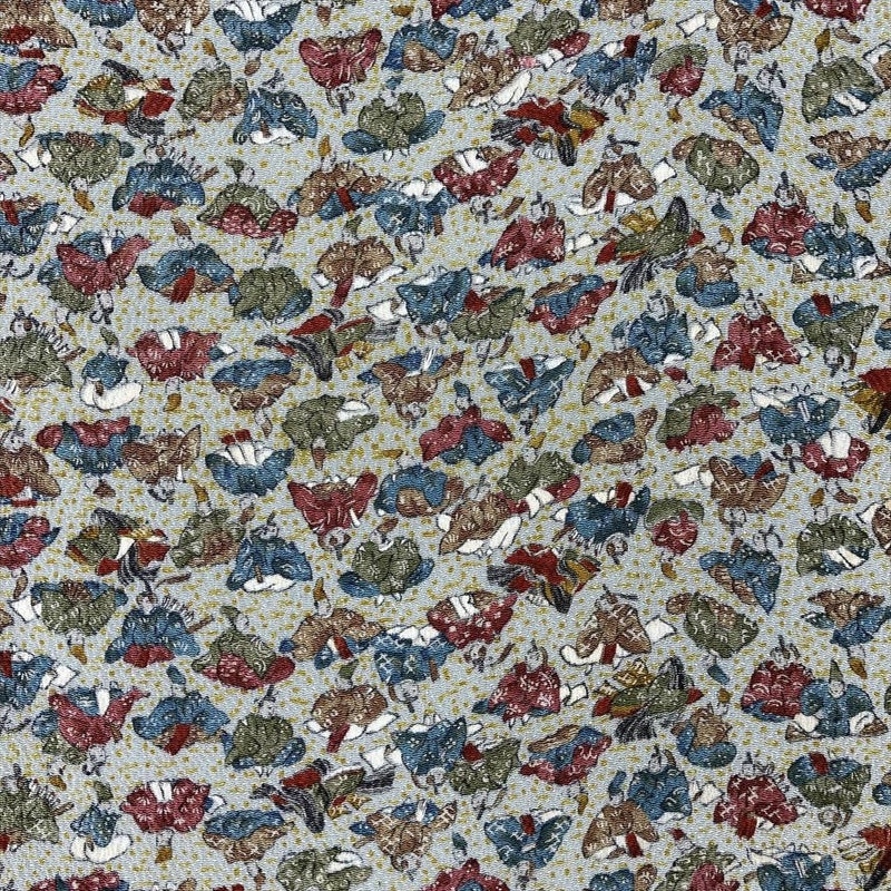 上品な藍白色の地には、三十六歌仙が繊細な小紋柄で配されており、古典的ながらも現代的な装いに映える一枚です。