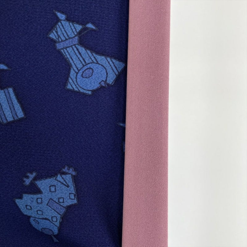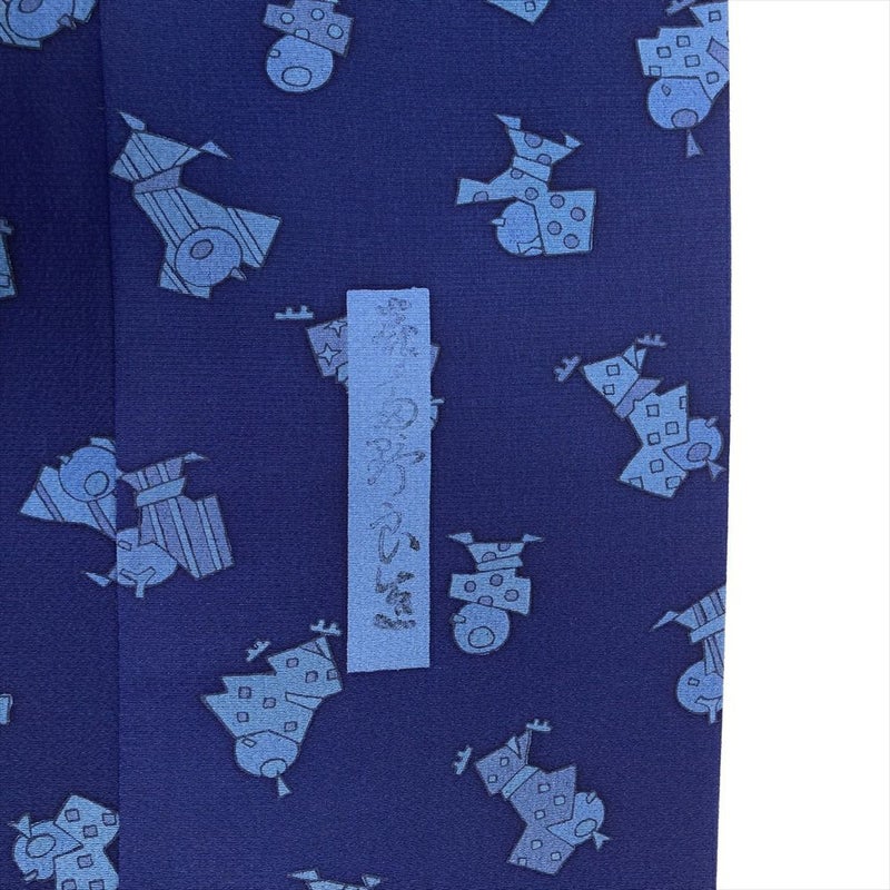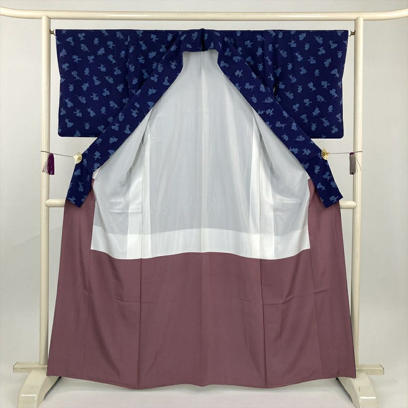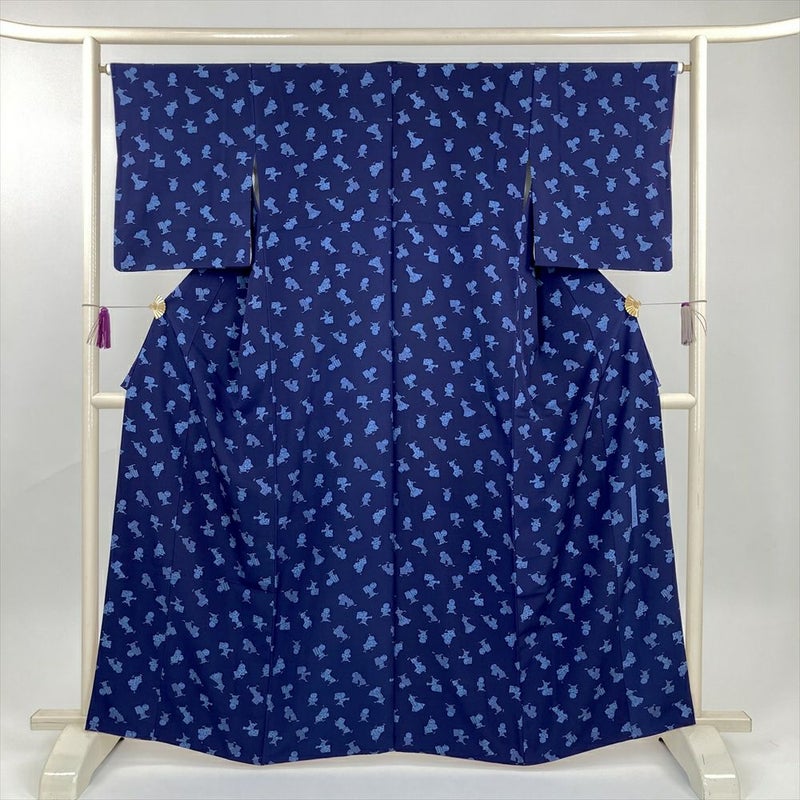 (中古) 小紋 紺 カジュアル わらべ 袷 絹【身丈】158.5cm【裄丈】65cm