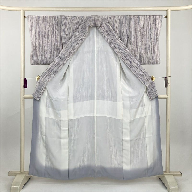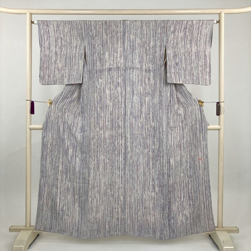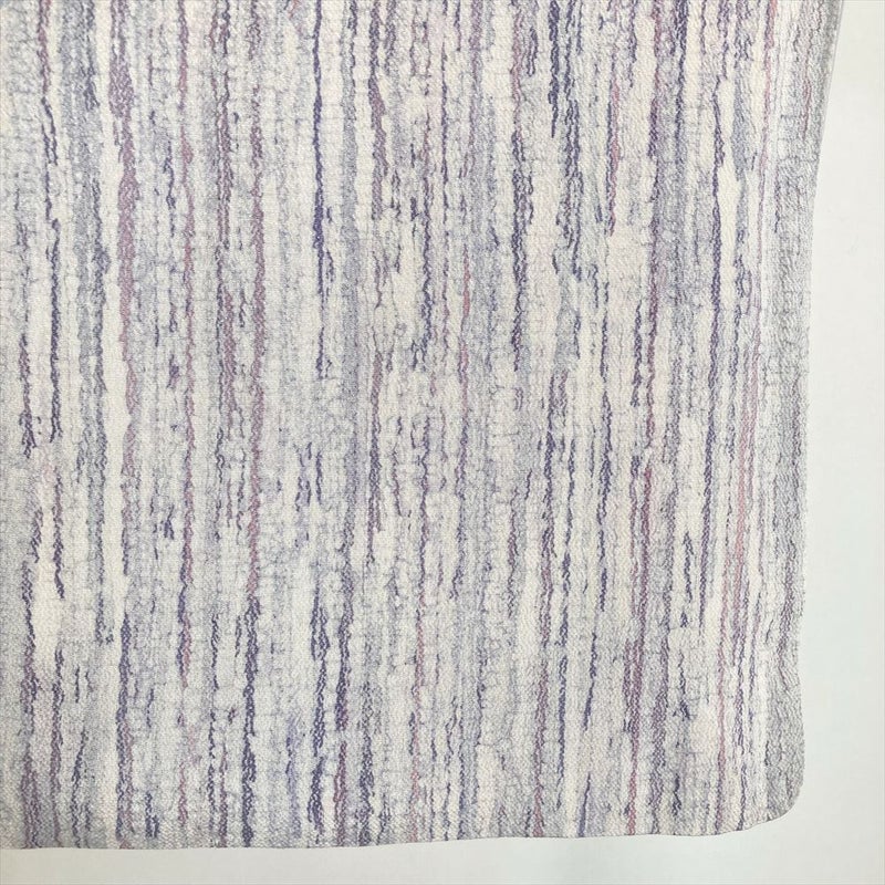 (中古) 小紋 白 薄紫 カジュアル 干割れ 変わり縞 袷 絹【身丈】155.5cm【裄丈】64cm