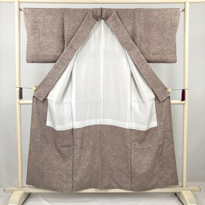 (中古) 小紋 灰紫 グレージュ カジュアル 蒔糊 袷 絹【身丈】147.5cm【裄丈】63.5cm