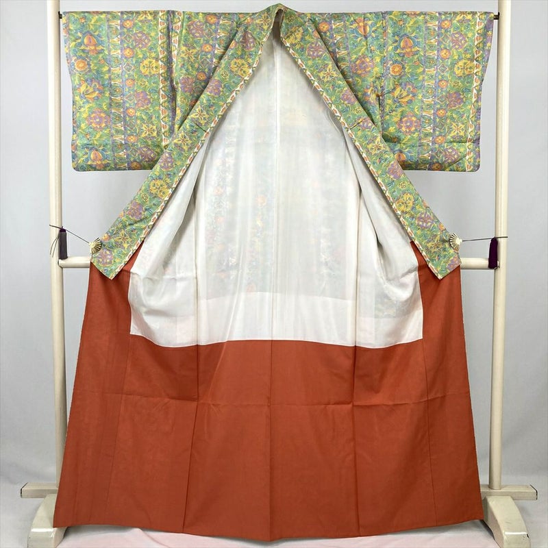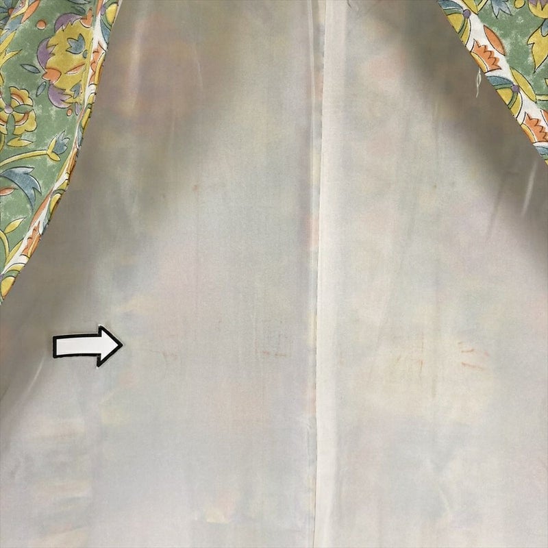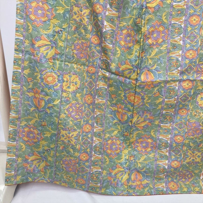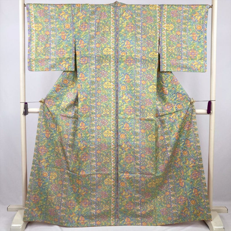 (中古) 小紋 緑 カジュアル 和更紗 袷 絹【身丈】160cm【裄丈】66.5cm