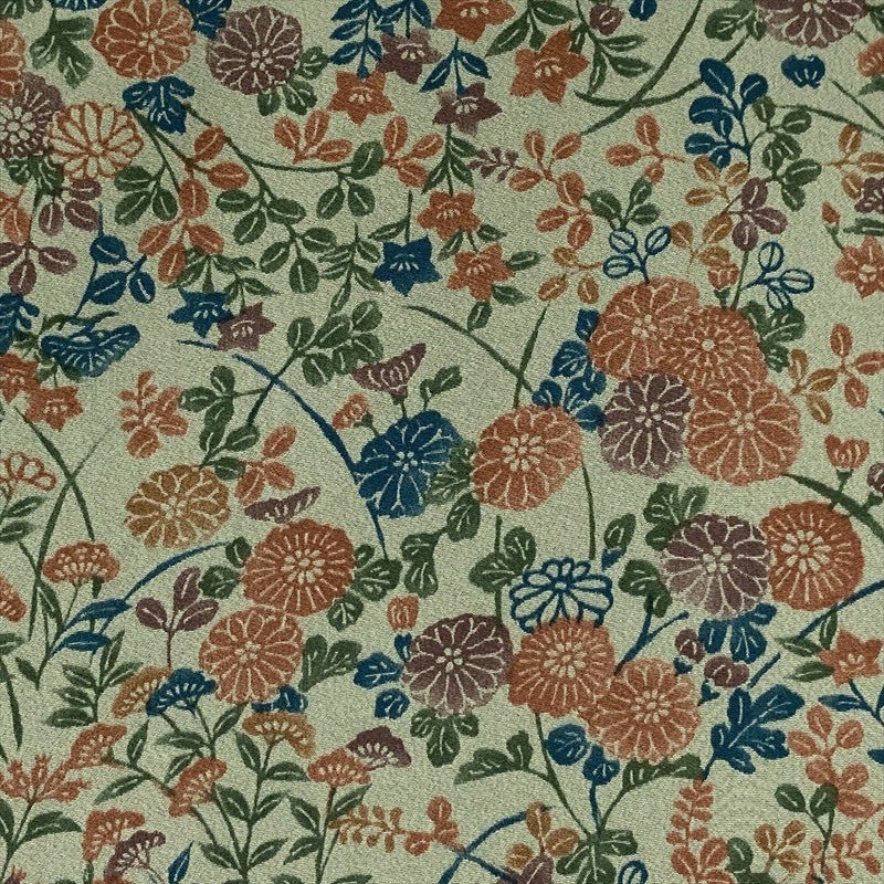 【色柄】薄緑 カジュアル 菊 萩 撫子