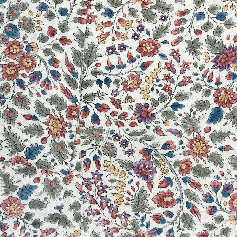 型絵染めによるにぎやかなボタニカル文様が全体に施され、自然の草花が織りなす豊かな表情が魅力です。
