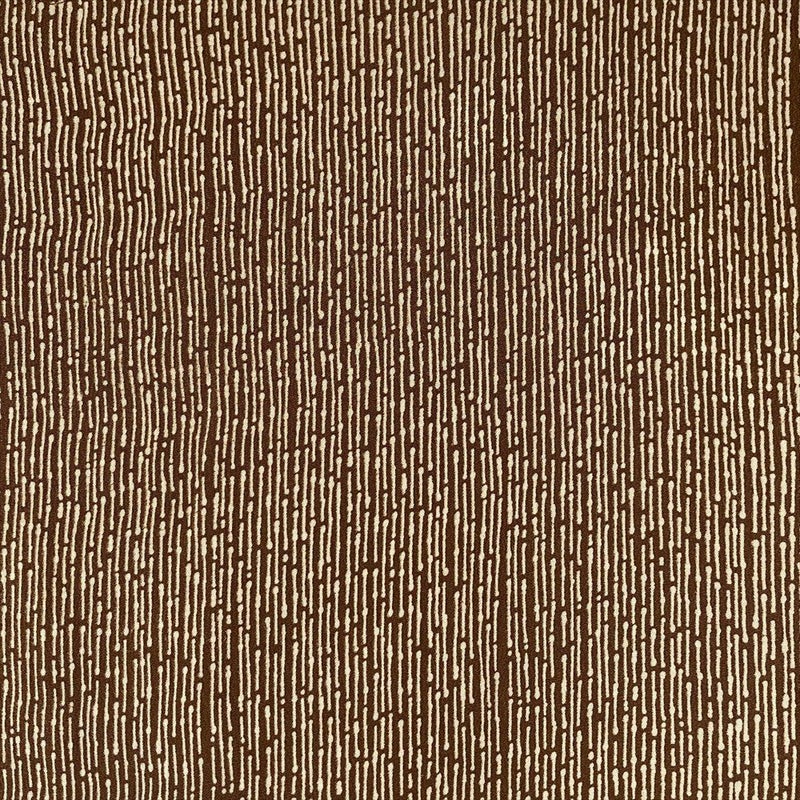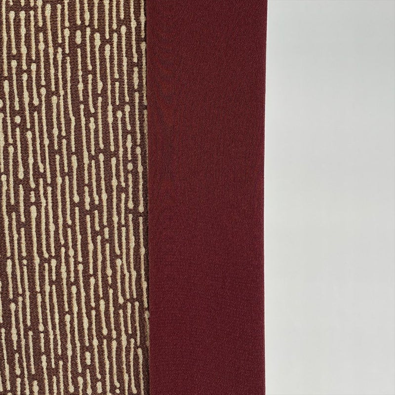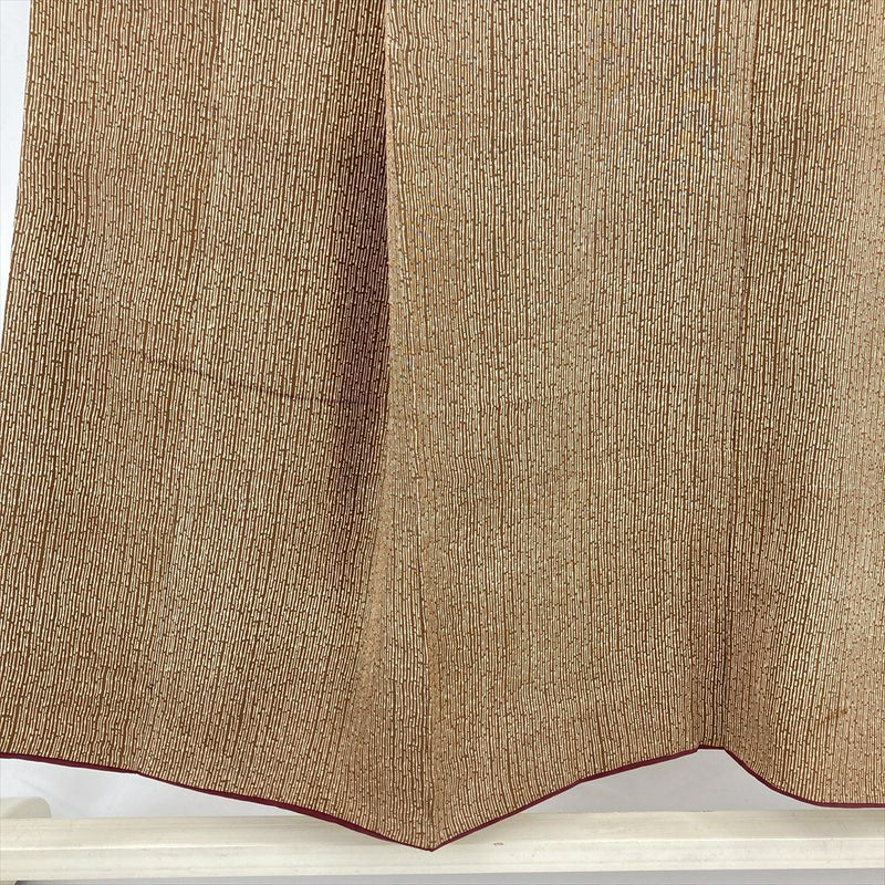 茶系の縮緬地に、型絵染めによる竹縞文様が粋に映える小紋です。