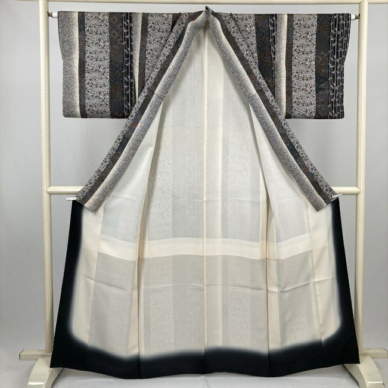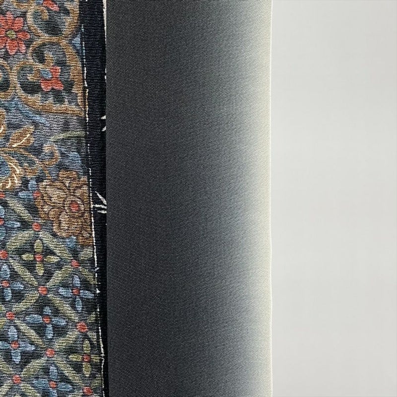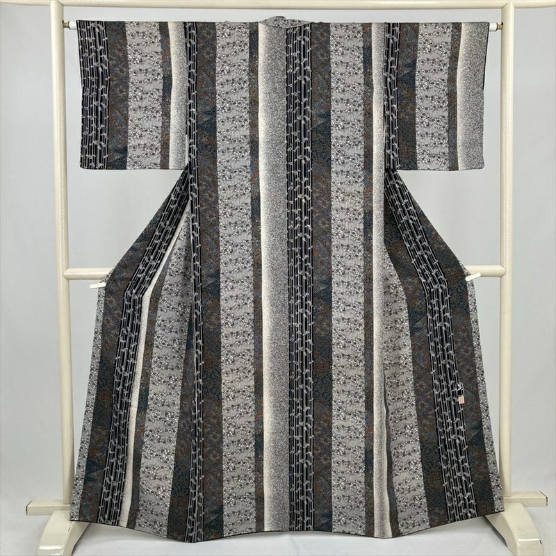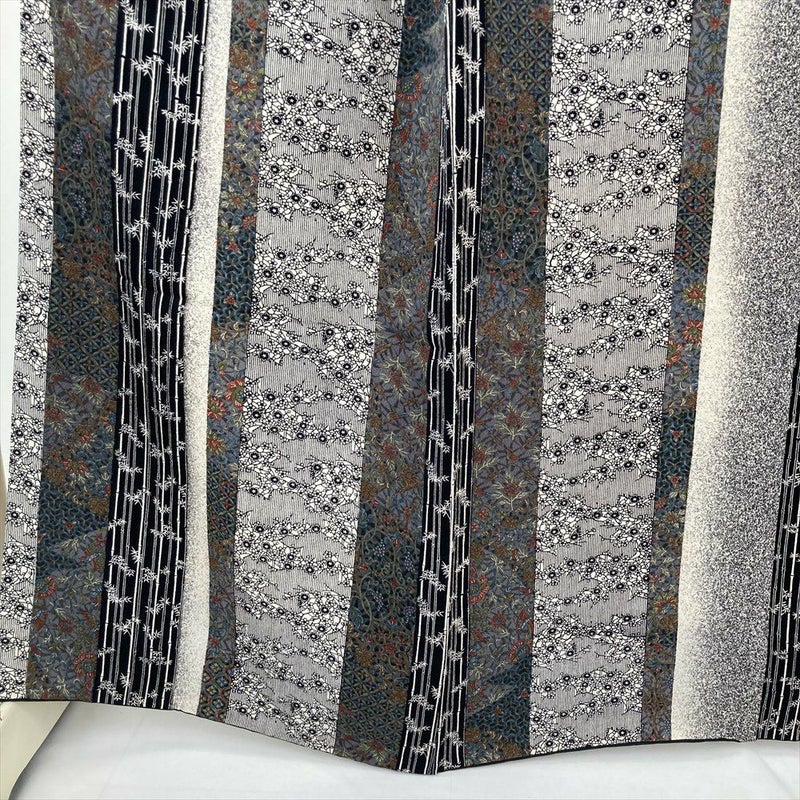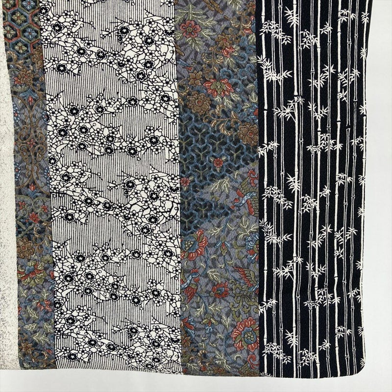 (中古) 小紋 黒 カジュアル 和更紗 梅 竹 袷 絹【身丈】156.5cm【裄丈】64.5cm