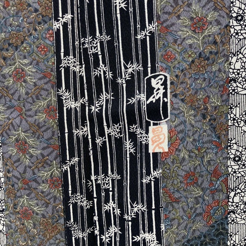 【色柄】黒 カジュアル 和更紗 梅 竹
