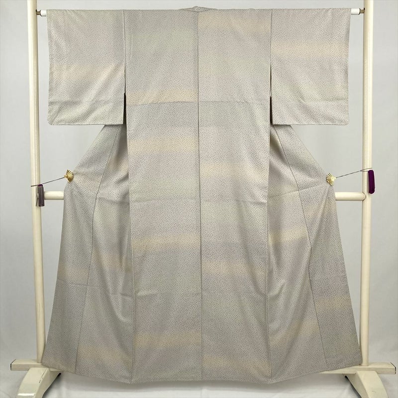 (中古) 御召 薄灰桜 グレー ぼかし カジュアル セミフォーマル 桜 袷 絹【身丈】154.5cm【裄丈】63.5cm