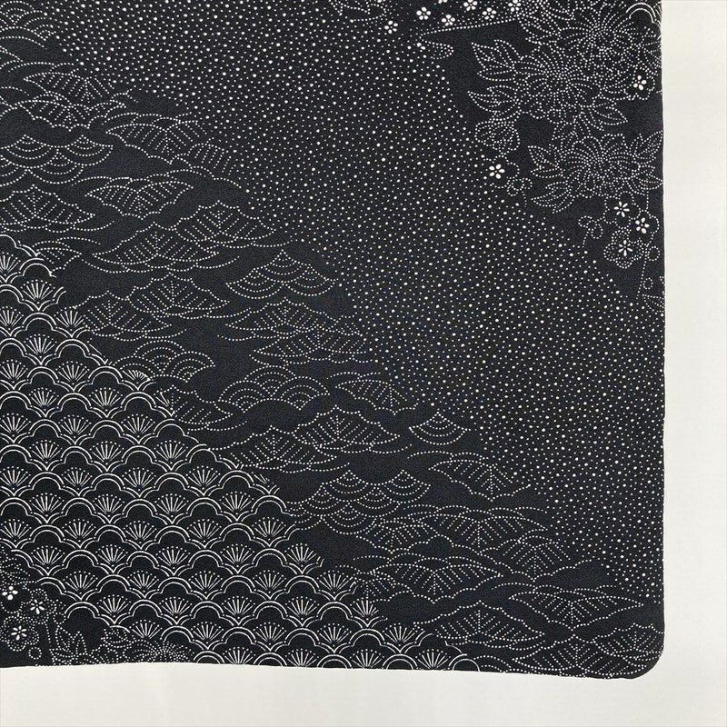 【色柄】黒 カジュアル 縮緬 斜め取り 松 梅 霰