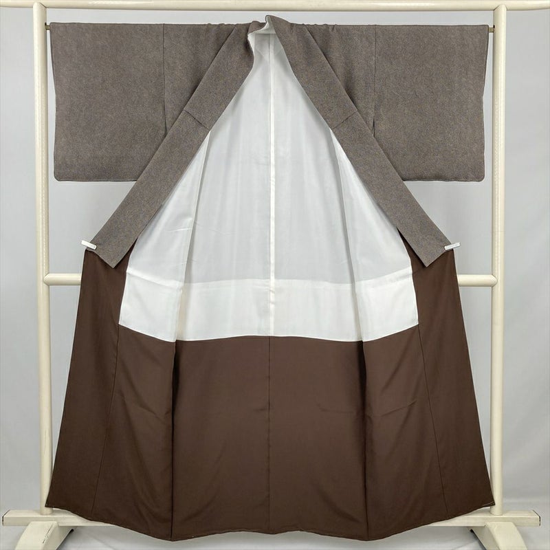 (中古) 小紋 茶 カジュアル セミフォーマル 江戸小紋 鮫 袷 絹【身丈】153cm【裄丈】66.5cm