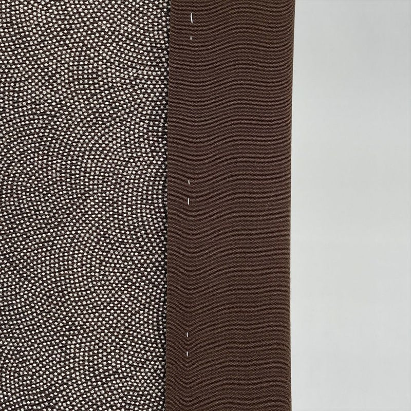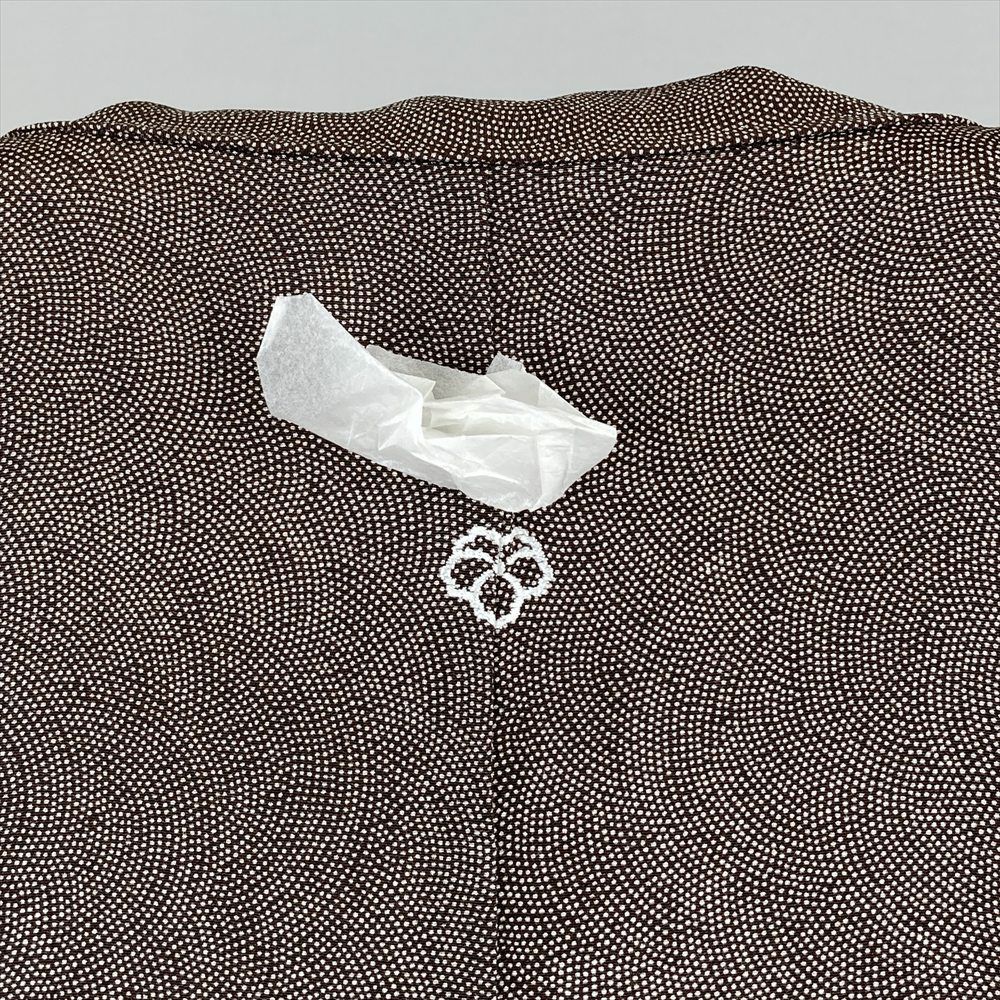 落ち着いた茶色地に、江戸小紋の鮫柄が細やかに織り出されたカジュアル小紋。