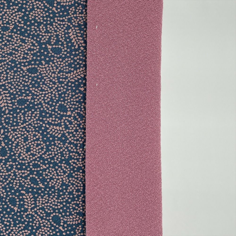 <div class=深い藍色地に、江戸小紋調の南天柄が繊細に広がるカジュアル小紋。