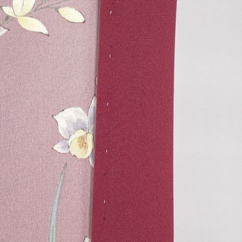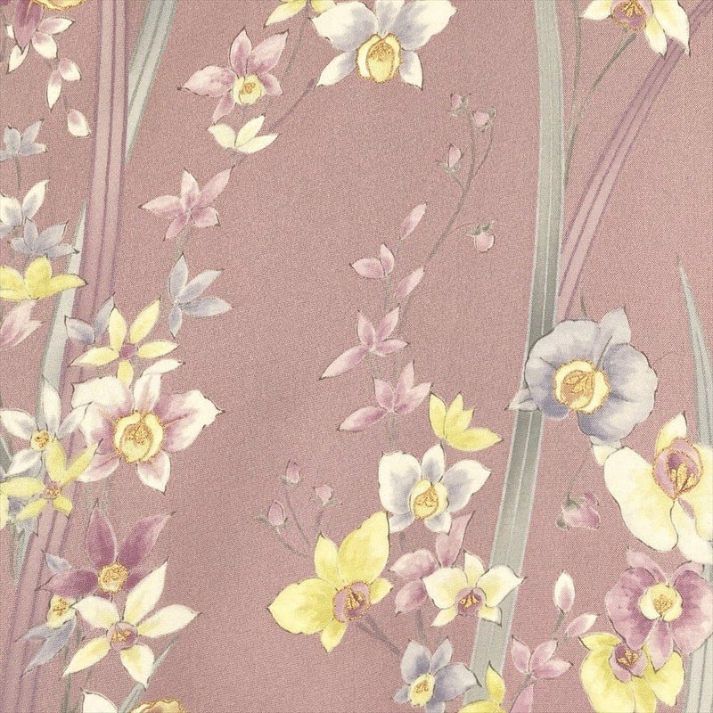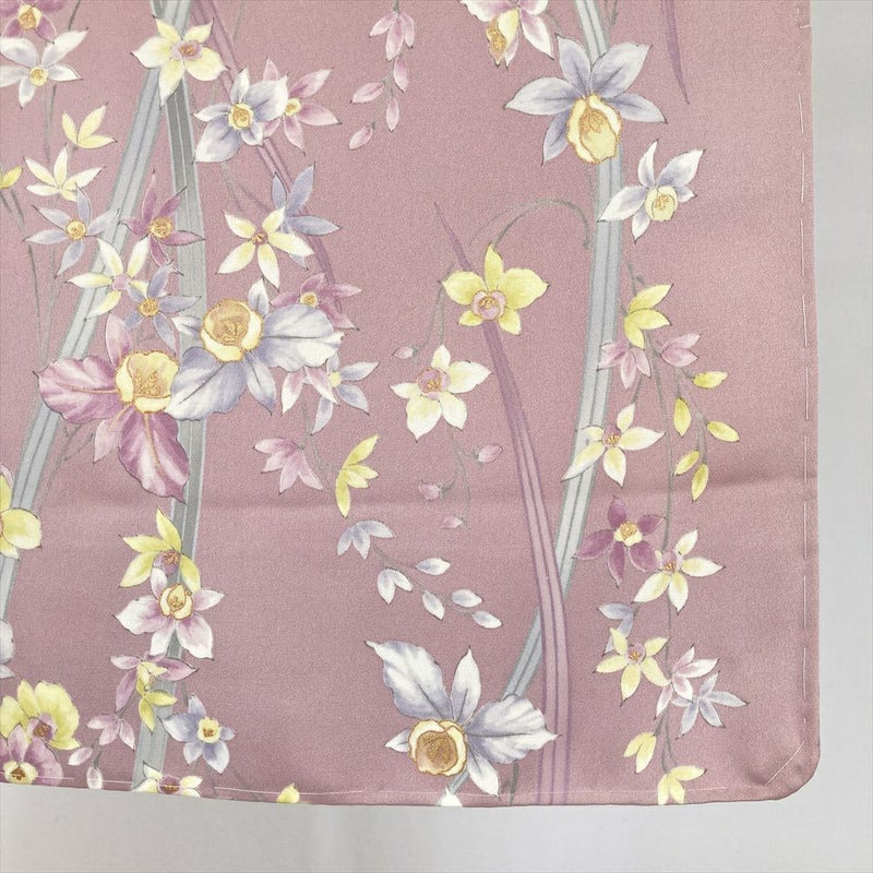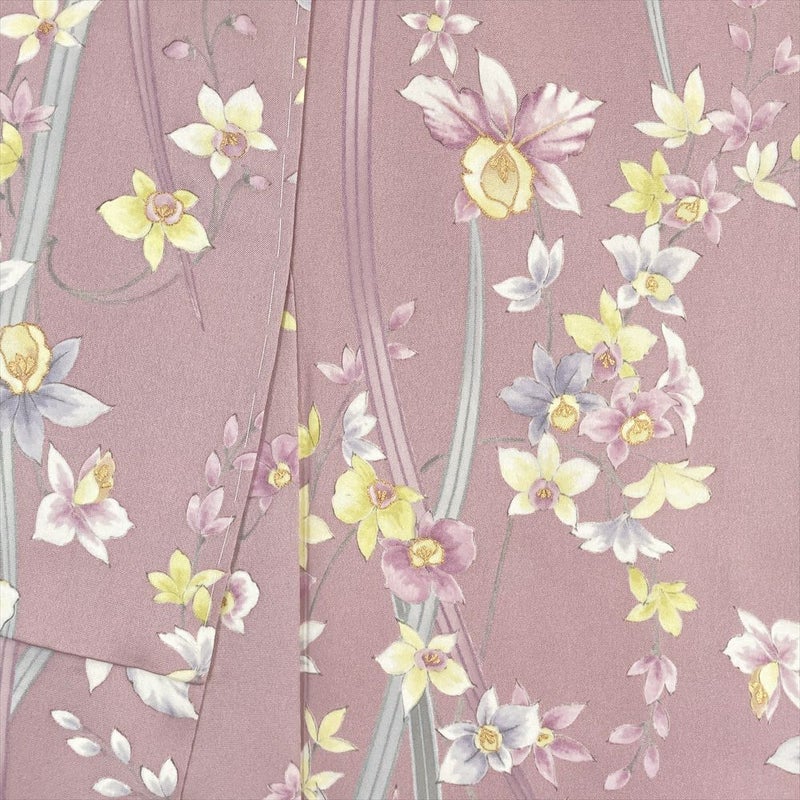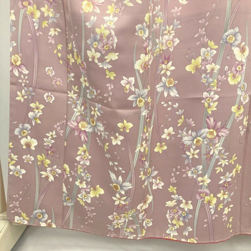 やわらかなピンク地に、可憐なすいせんの花が散りばめられたカジュアル小紋。