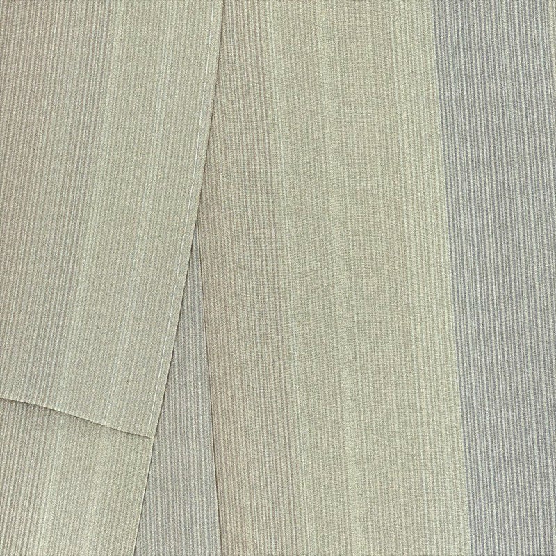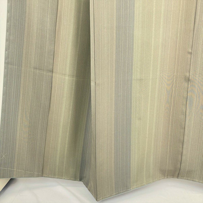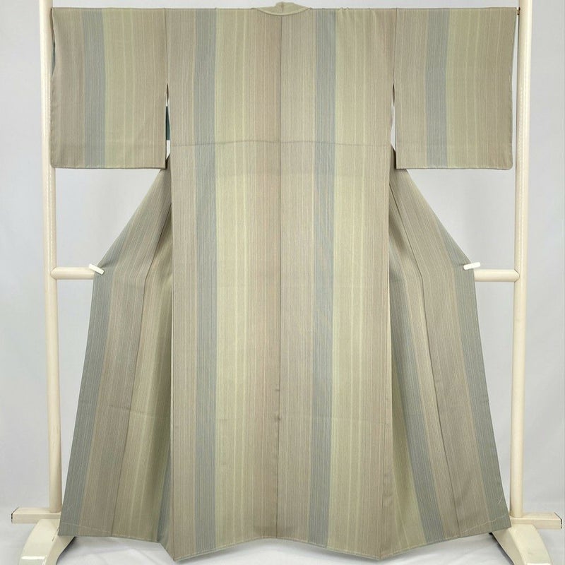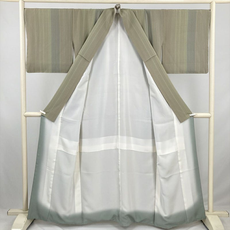 (中古) 小紋 薄緑 カジュアル 縦縞 袷 絹 【身丈】154cm【裄丈】68.5cm