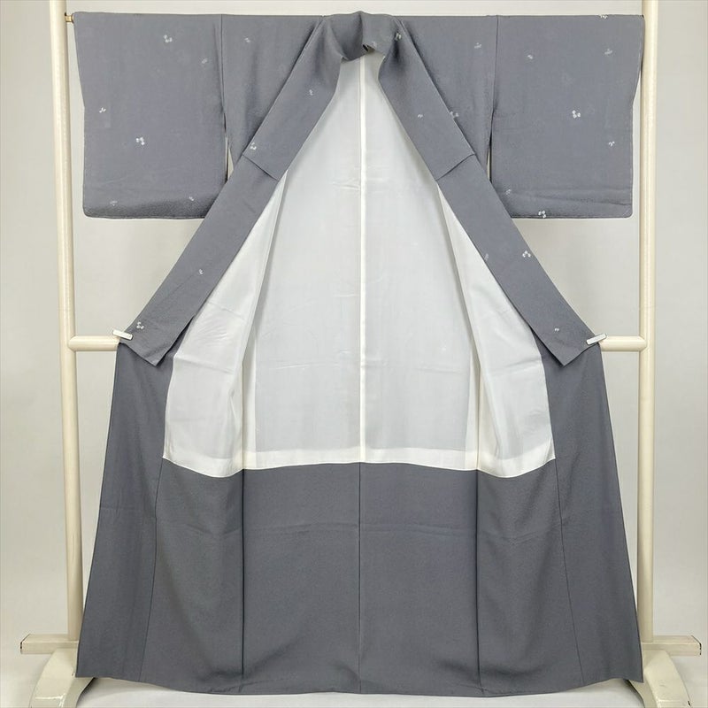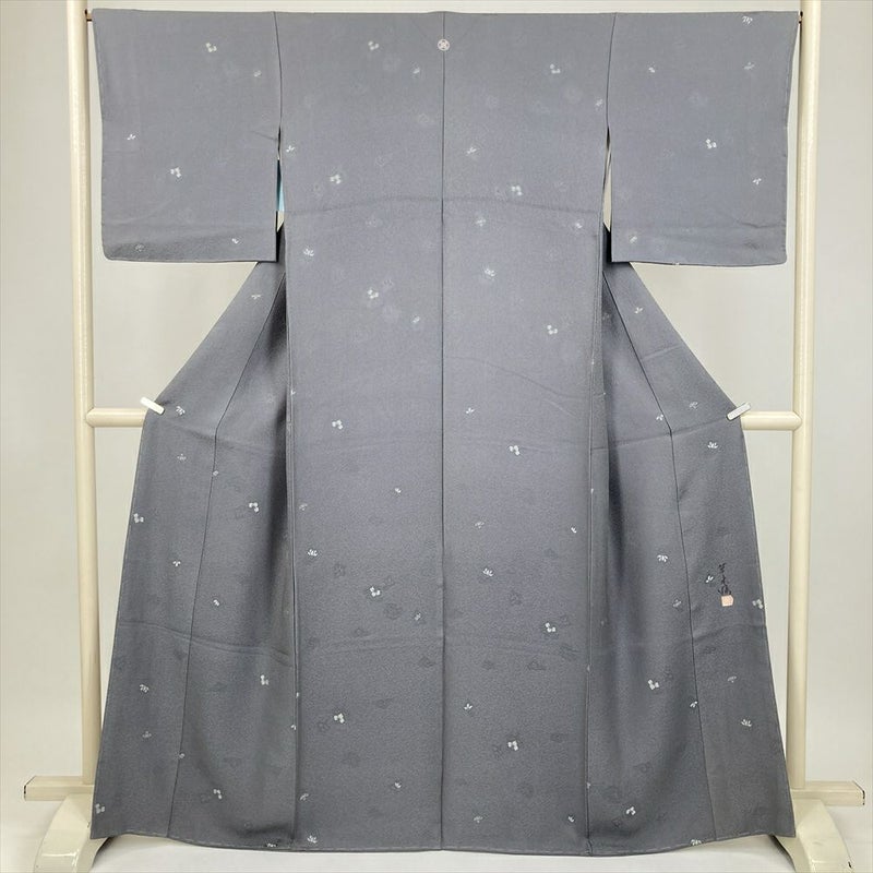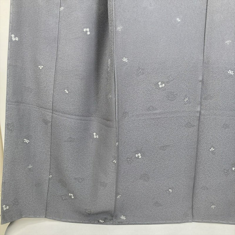 (中古) 小紋 グレー カジュアル 唐草 袷 絹 【身丈】161cm【裄丈】67cm