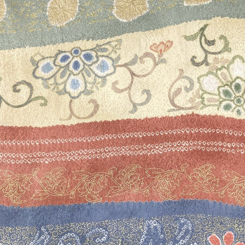 【色柄】マルチカラー カジュアル 地紋織り 横段 絞り 刺繍 天平文