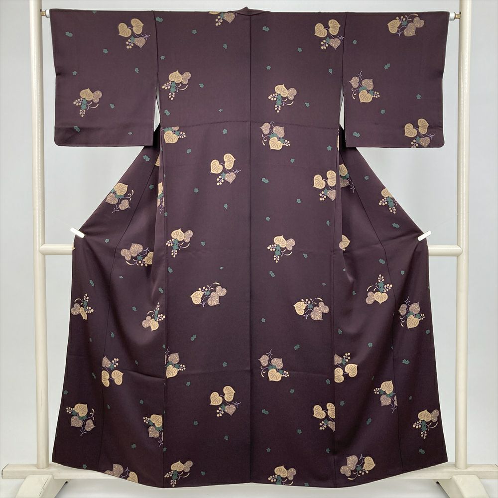 (中古) 小紋 灰赤紫 カジュアル 葵 袷 絹 【身丈】151cm【裄丈】65.5cm