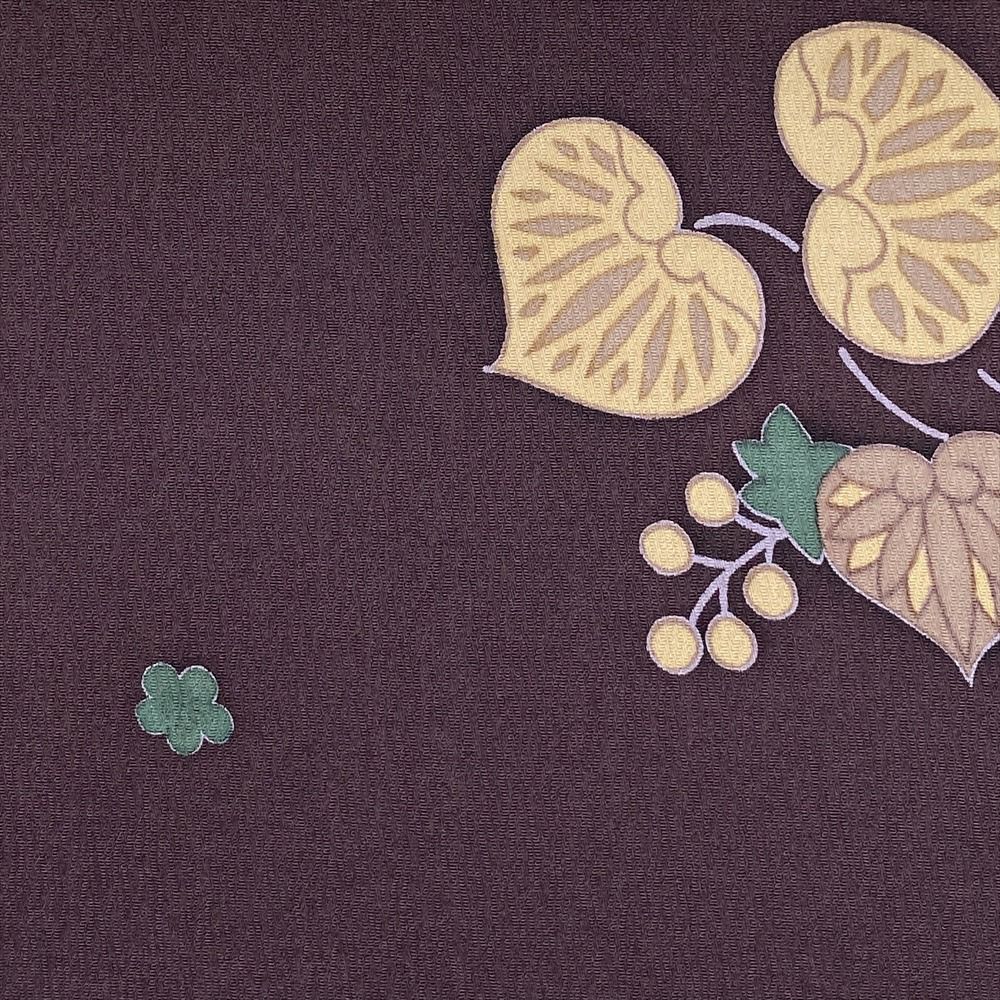 深みのあるチョコレート色が落ち着いた女性らしさを演出し、優美な葵文様が装いに気品ある華やぎを添えます。
