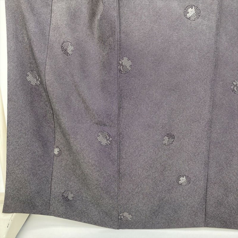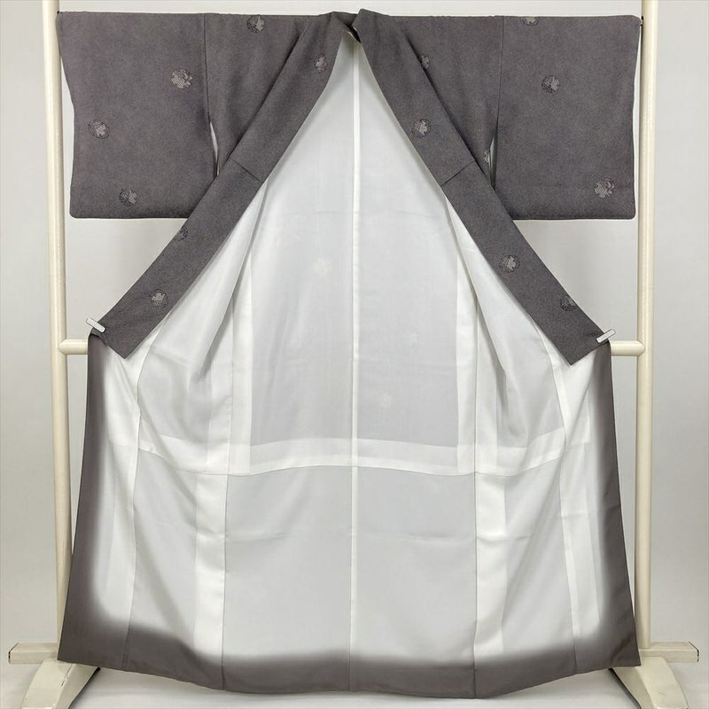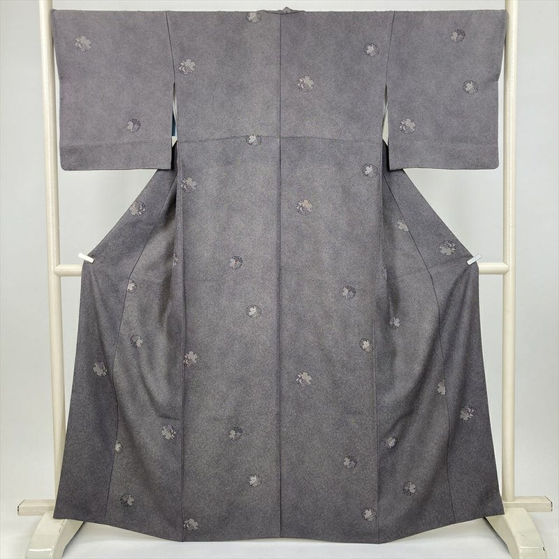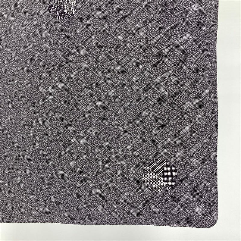 (中古) 小紋 灰赤紫 焦げ茶 カジュアル 鮫 雪輪 袷 絹 【身丈】159cm【裄丈】69cm
