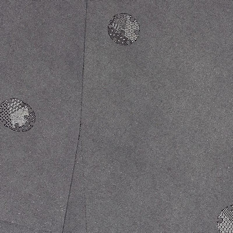 伝統ある伊勢型紙を用いて染め上げられた、創作性豊かな小紋であり、手仕事のぬくもりと奥深い魅力を感じさせます。