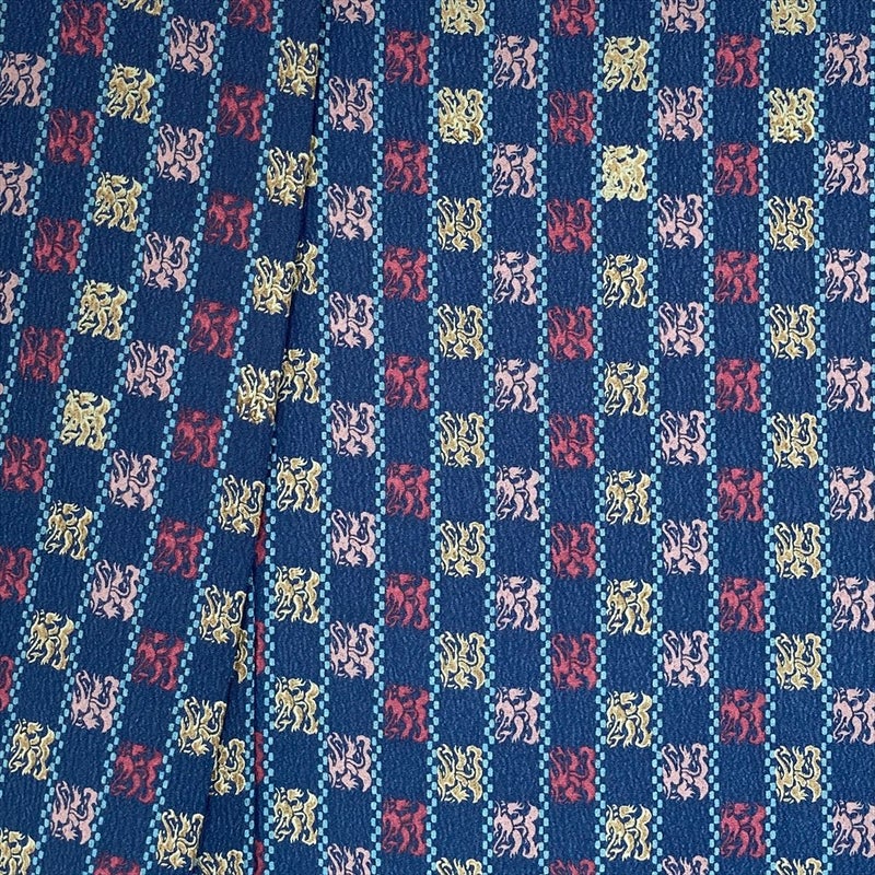 (中古) 小紋 紺 カジュアル オリエンタル 市松 袷 絹【身丈】161cm【裄丈】69.5cm