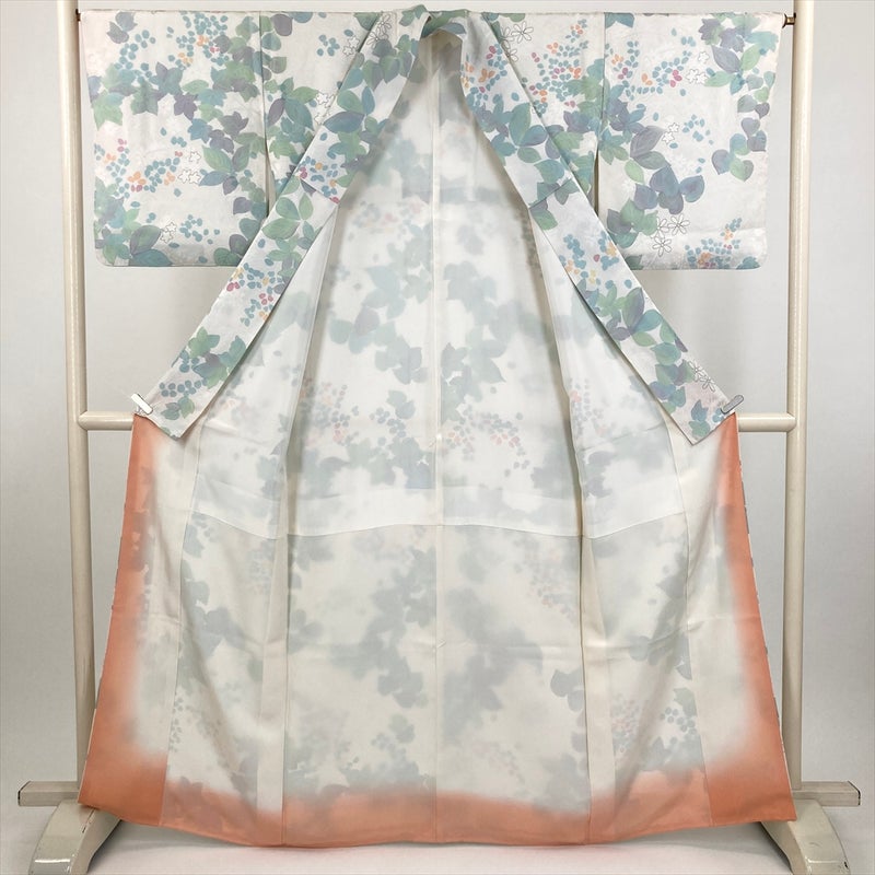 (中古) 小紋 白 カジュアル 紋意匠 花 袷 絹【身丈】158cm【裄丈】66cm