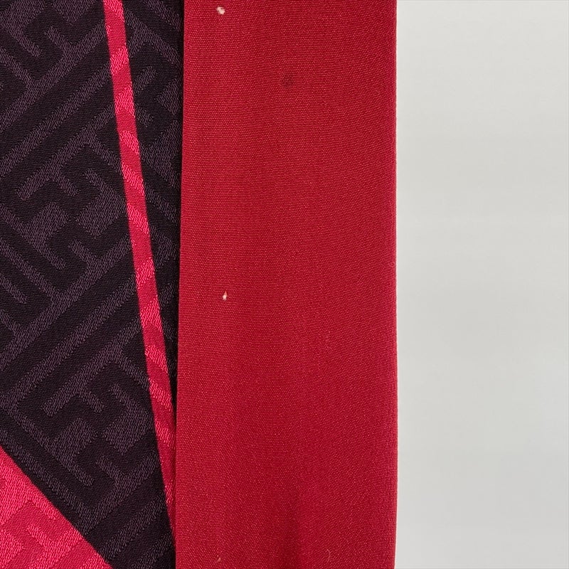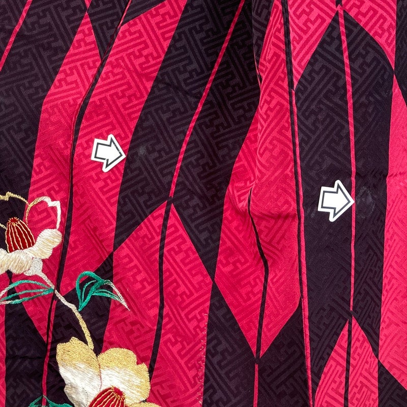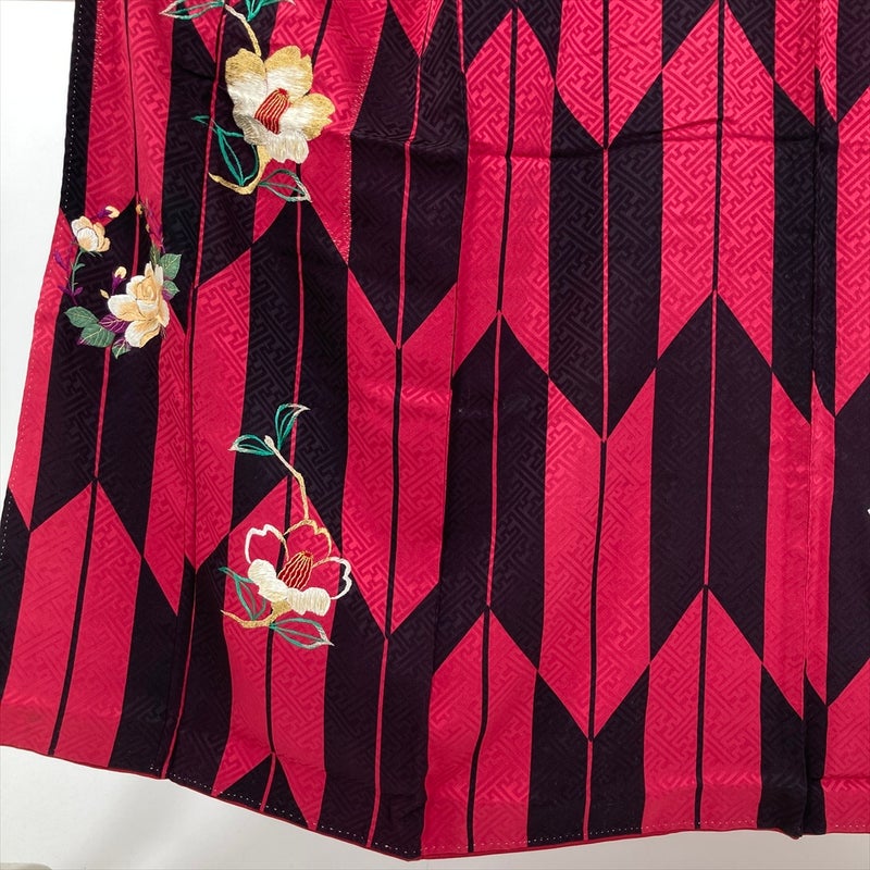 【色柄】深紅 ヴィンテージ 矢絣 華紋 刺繍 地紋織り