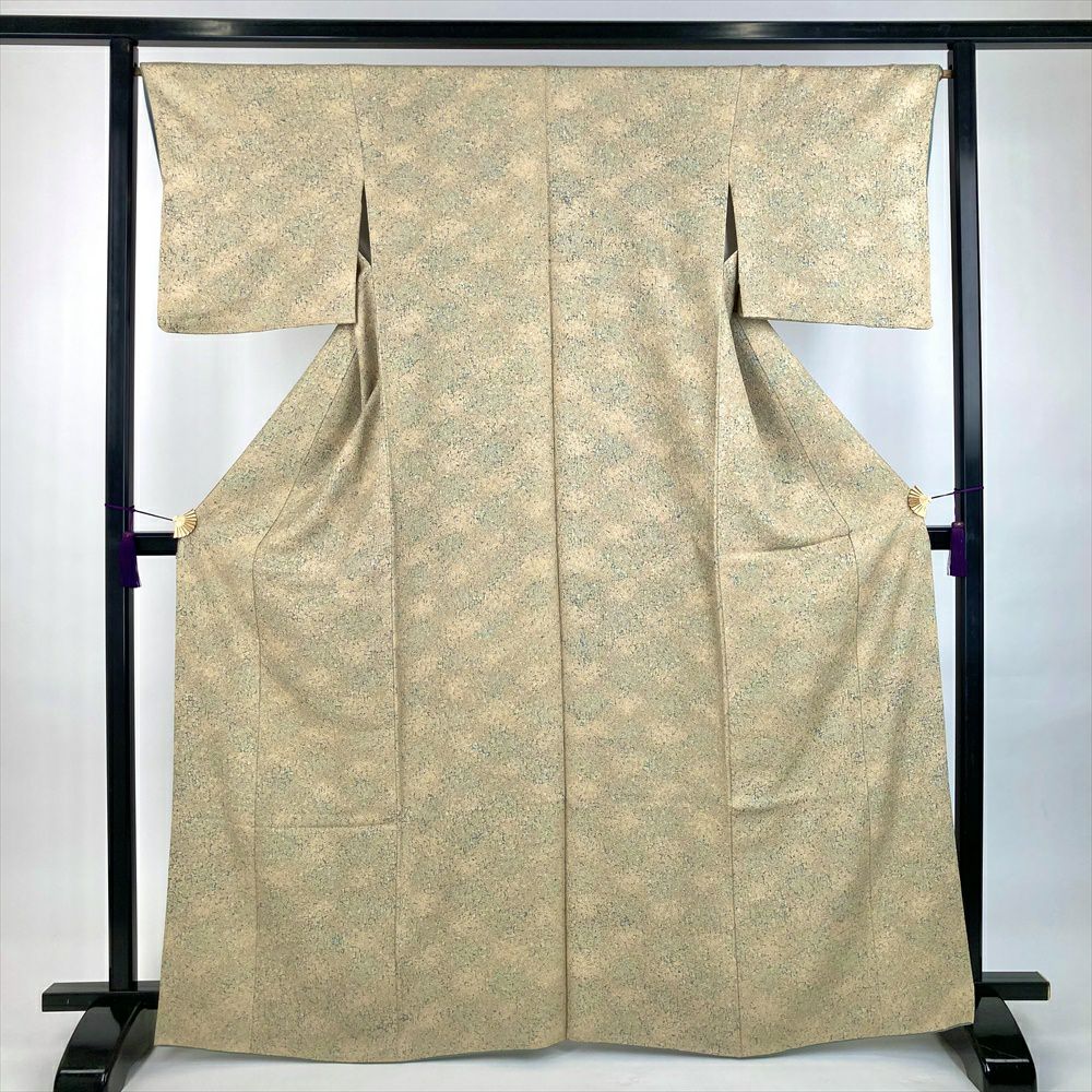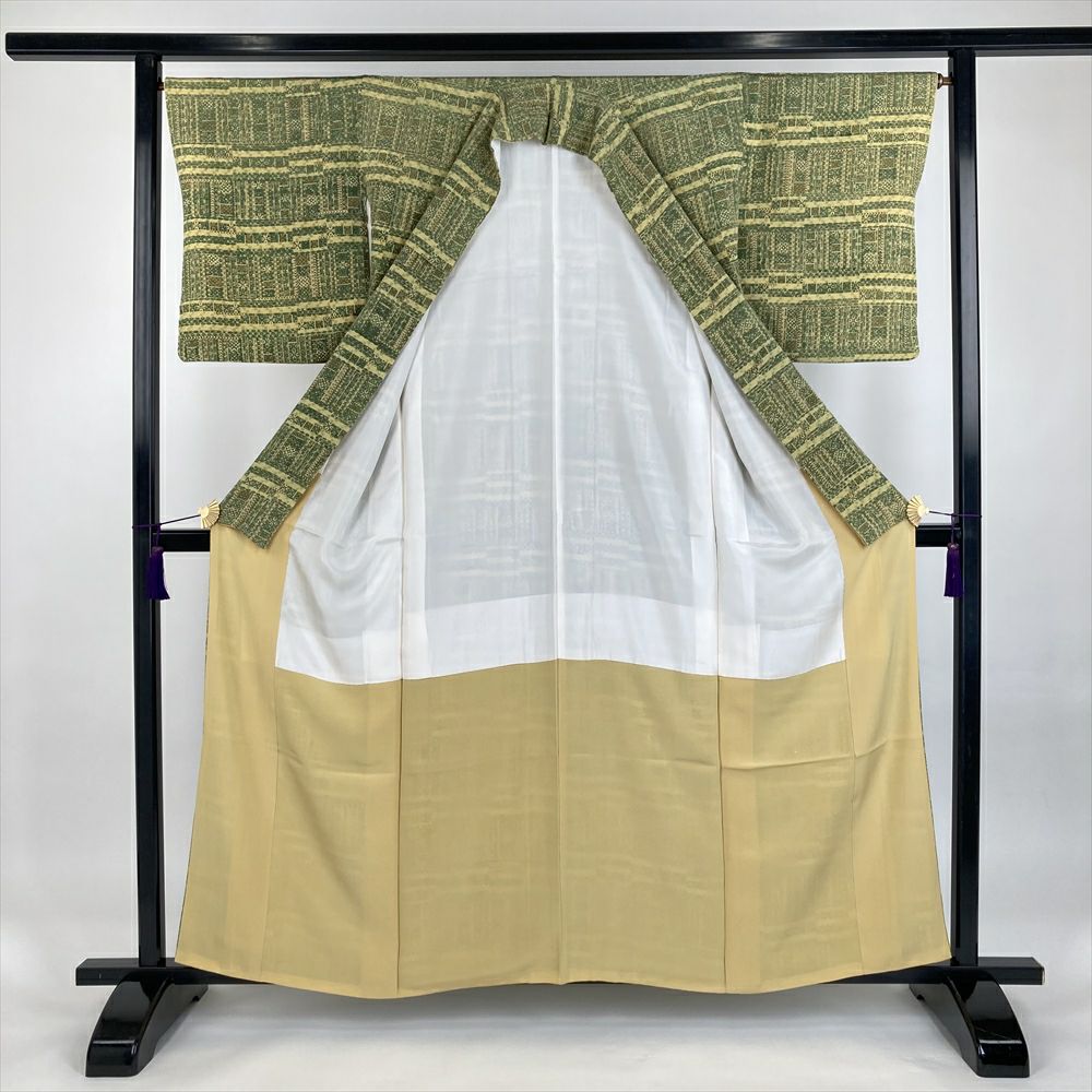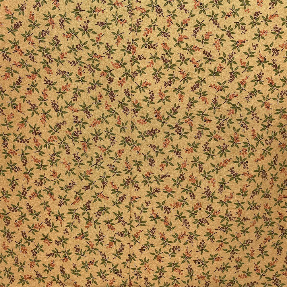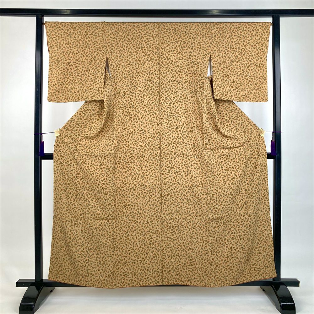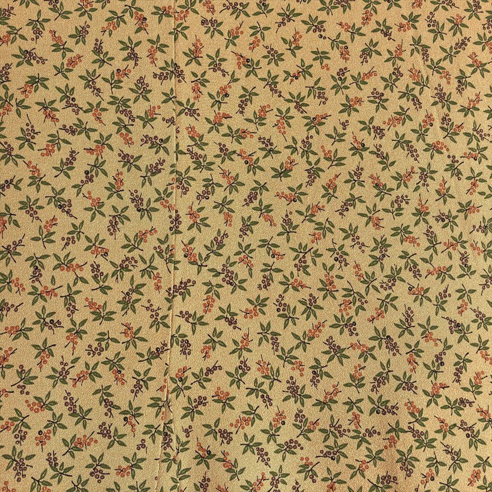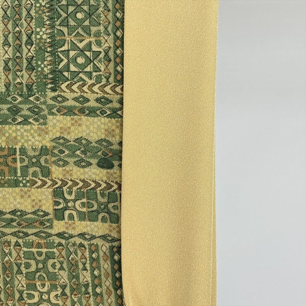他の画像を見る (中古)小紋 ベージュ 黄色 緑 カジュアル ちりめん 染め 唐花唐草 吉祥文 オリエンタル 袷 SS【身丈】153cm【裄丈】66.5cm ¥ 16,500 税込 お気に入りに登録する
