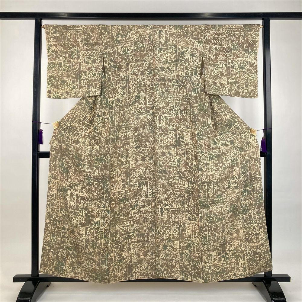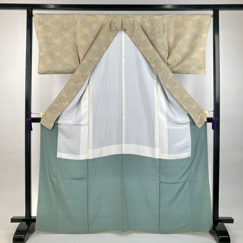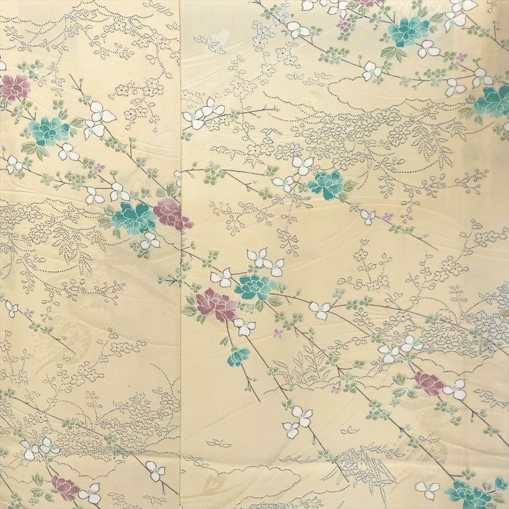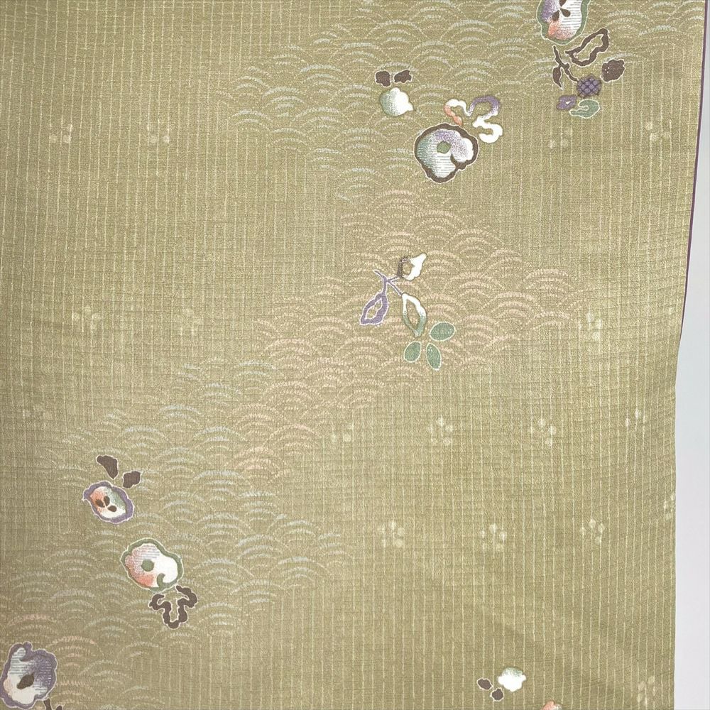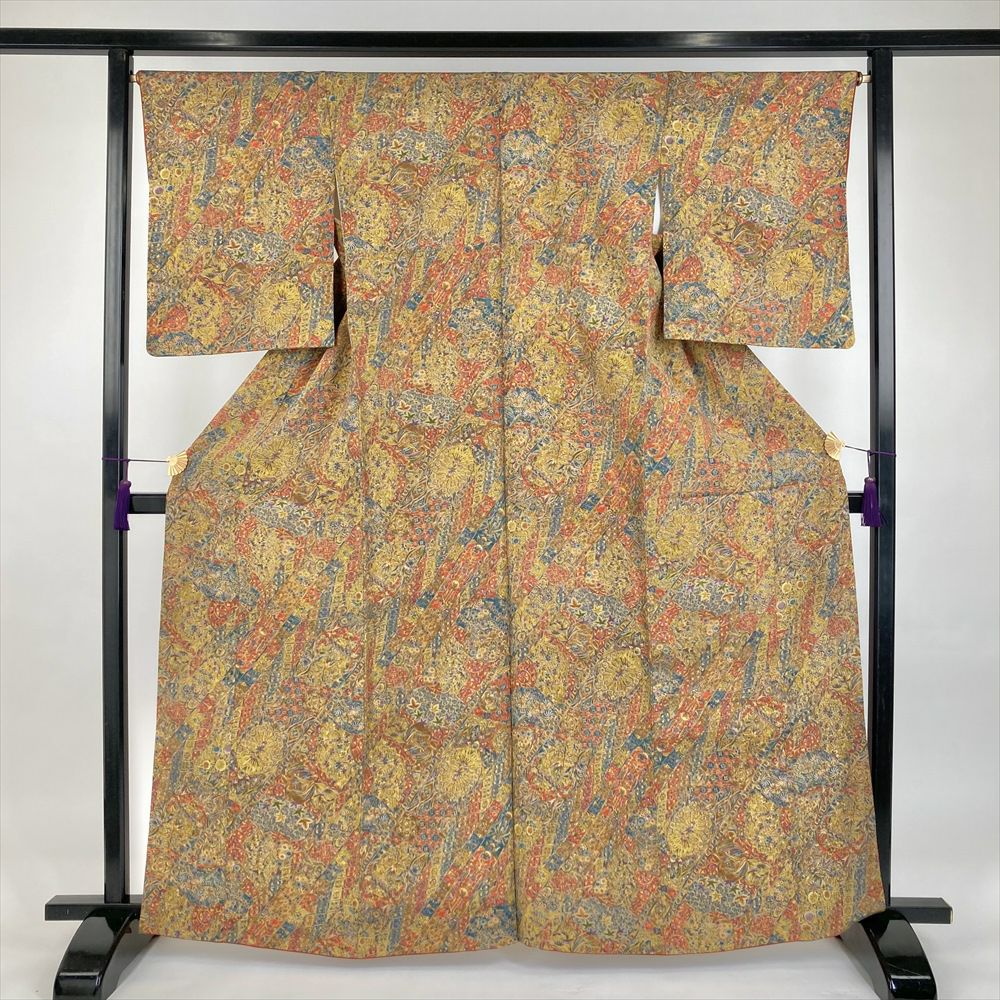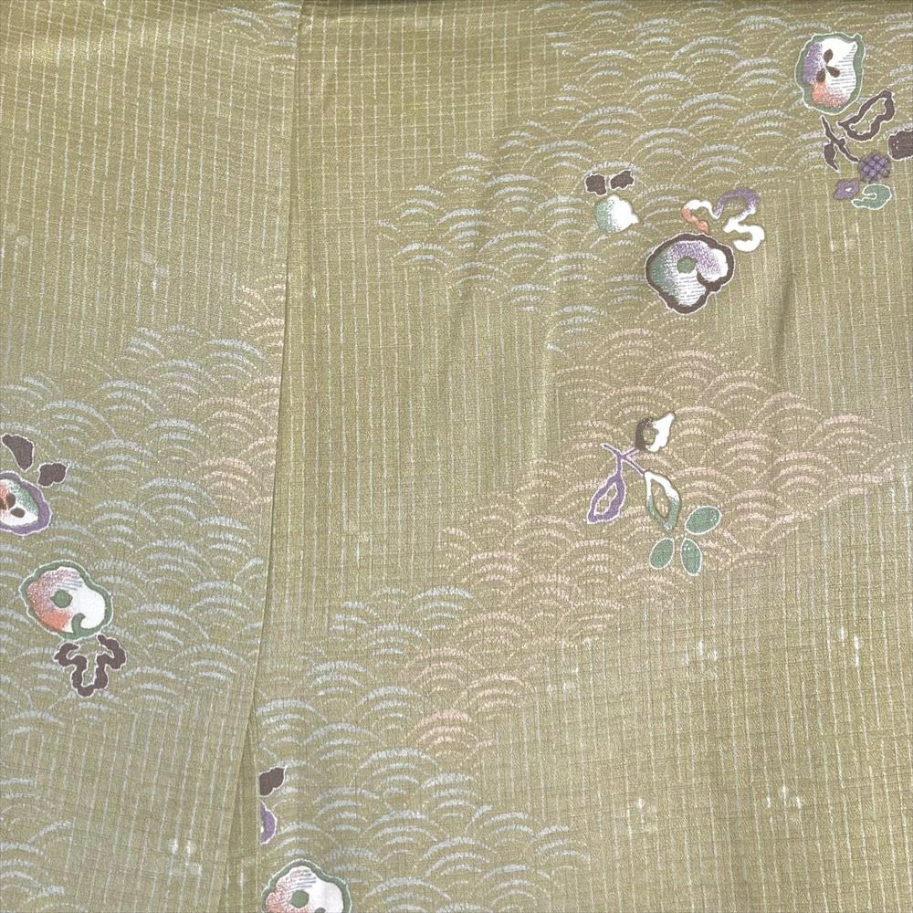 他の画像を見る (中古)小紋 ベージュ 黄色 緑 カジュアル ちりめん 染め 唐花唐草 吉祥文 オリエンタル 袷 SS【身丈】153cm【裄丈】66.5cm ¥ 16,500 税込 お気に入りに登録する