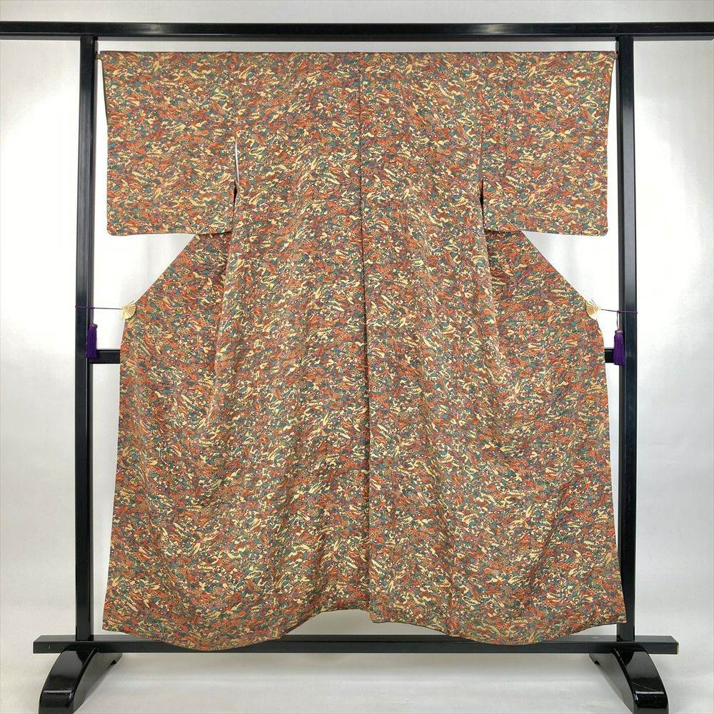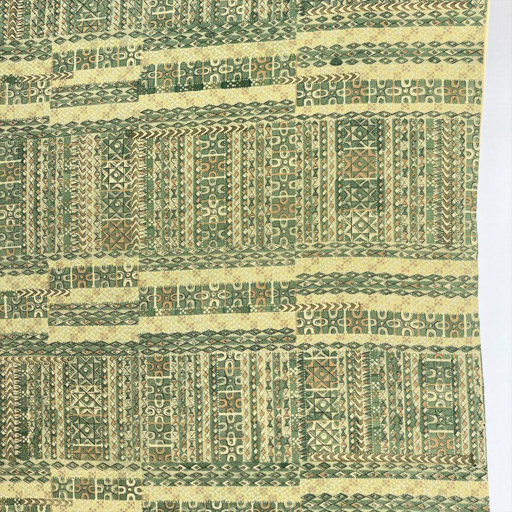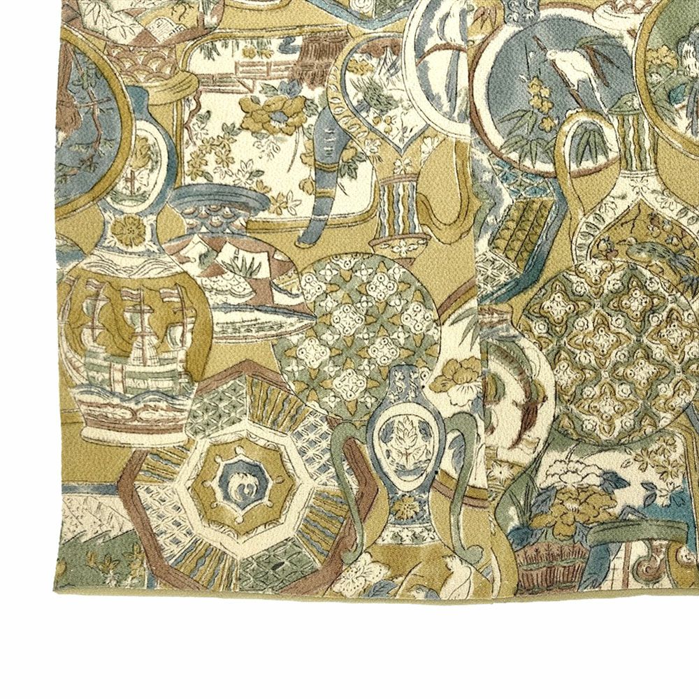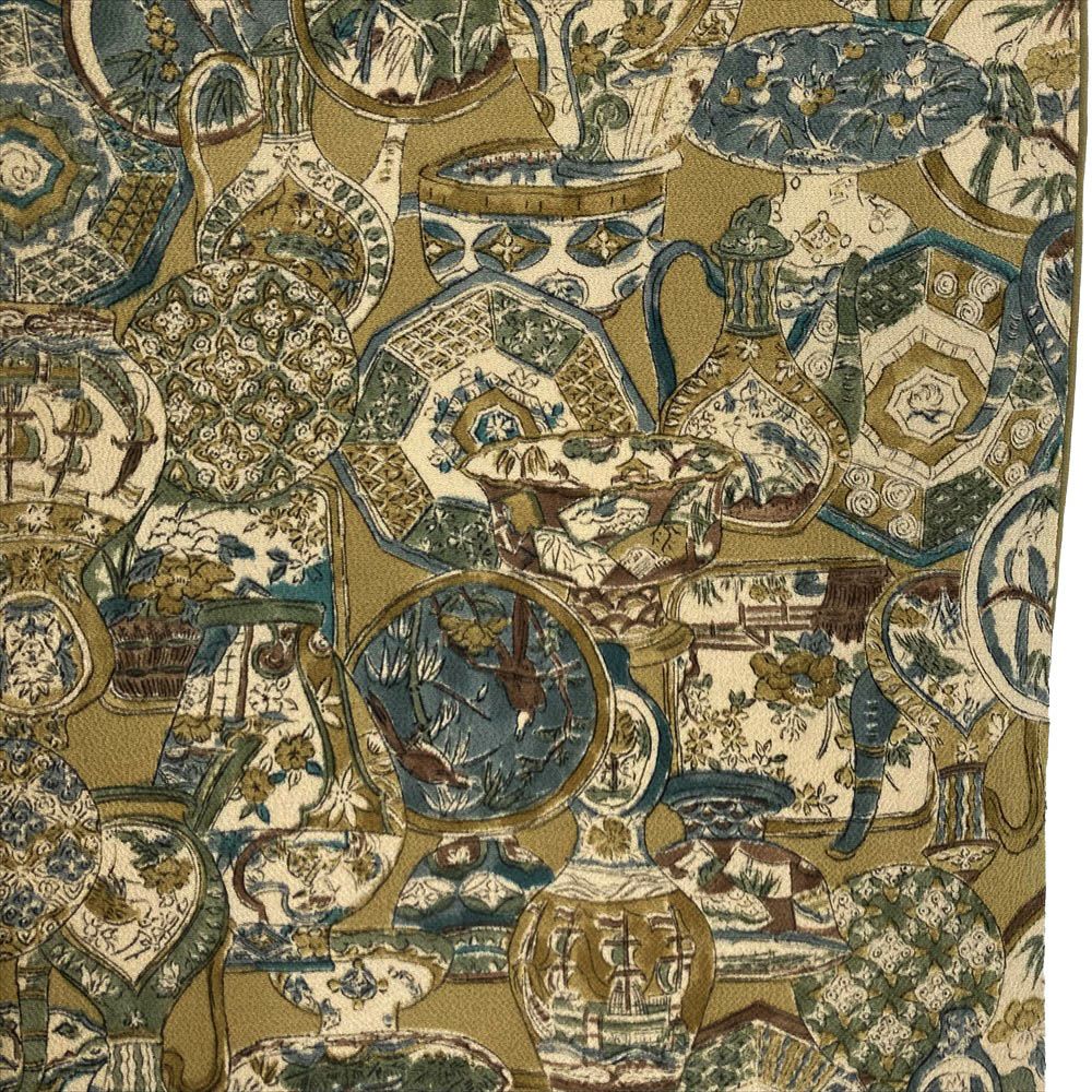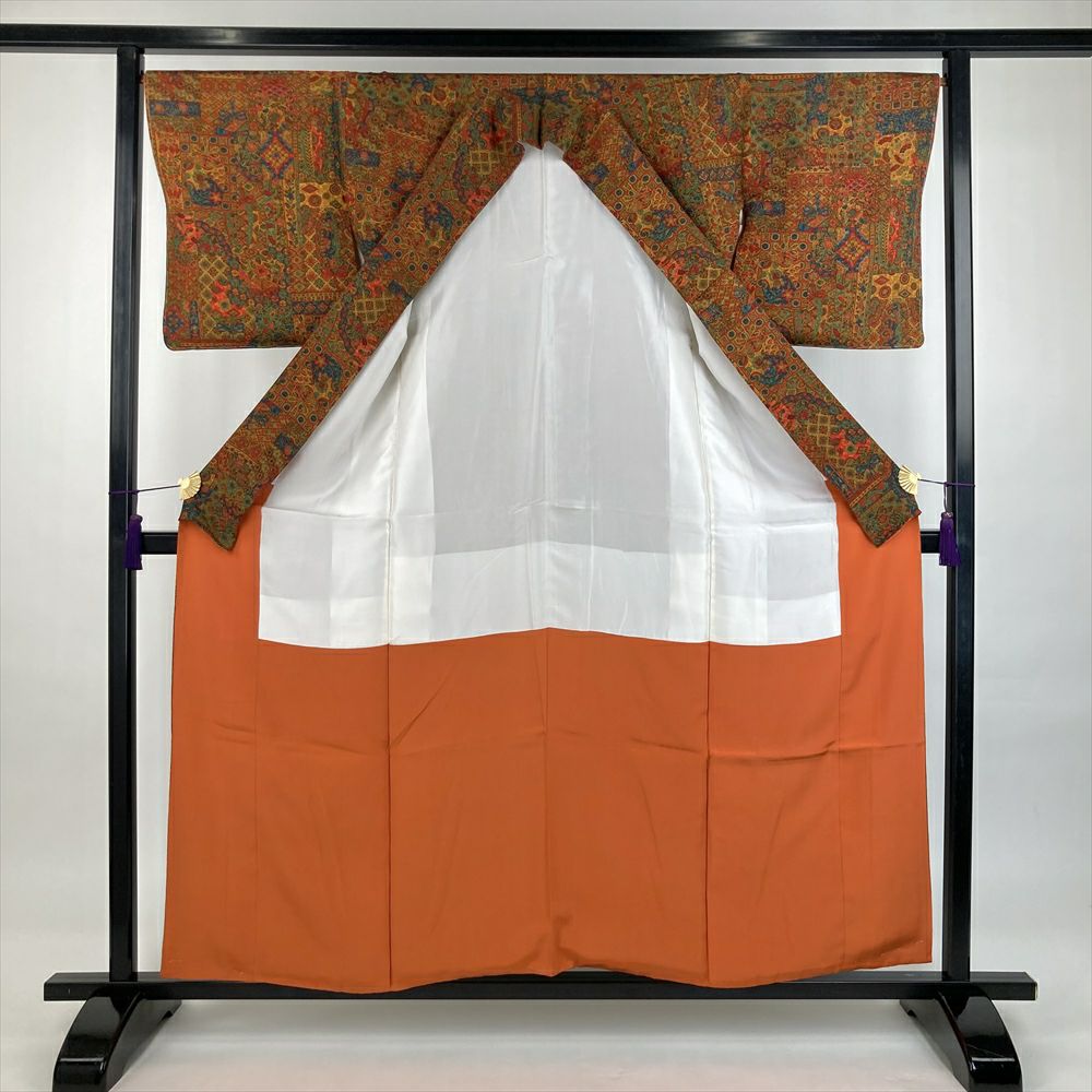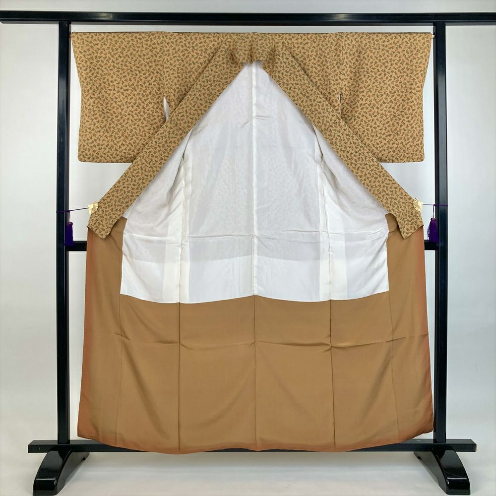 他の画像を見る (中古)小紋 ベージュ 黄色 緑 カジュアル ちりめん 染め 唐花唐草 吉祥文 オリエンタル 袷 SS【身丈】153cm【裄丈】66.5cm ¥ 16,500 税込 お気に入りに登録する