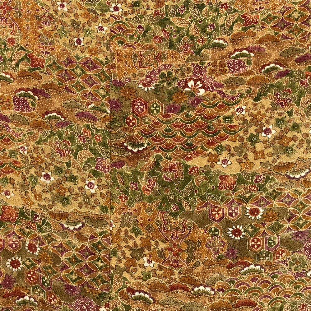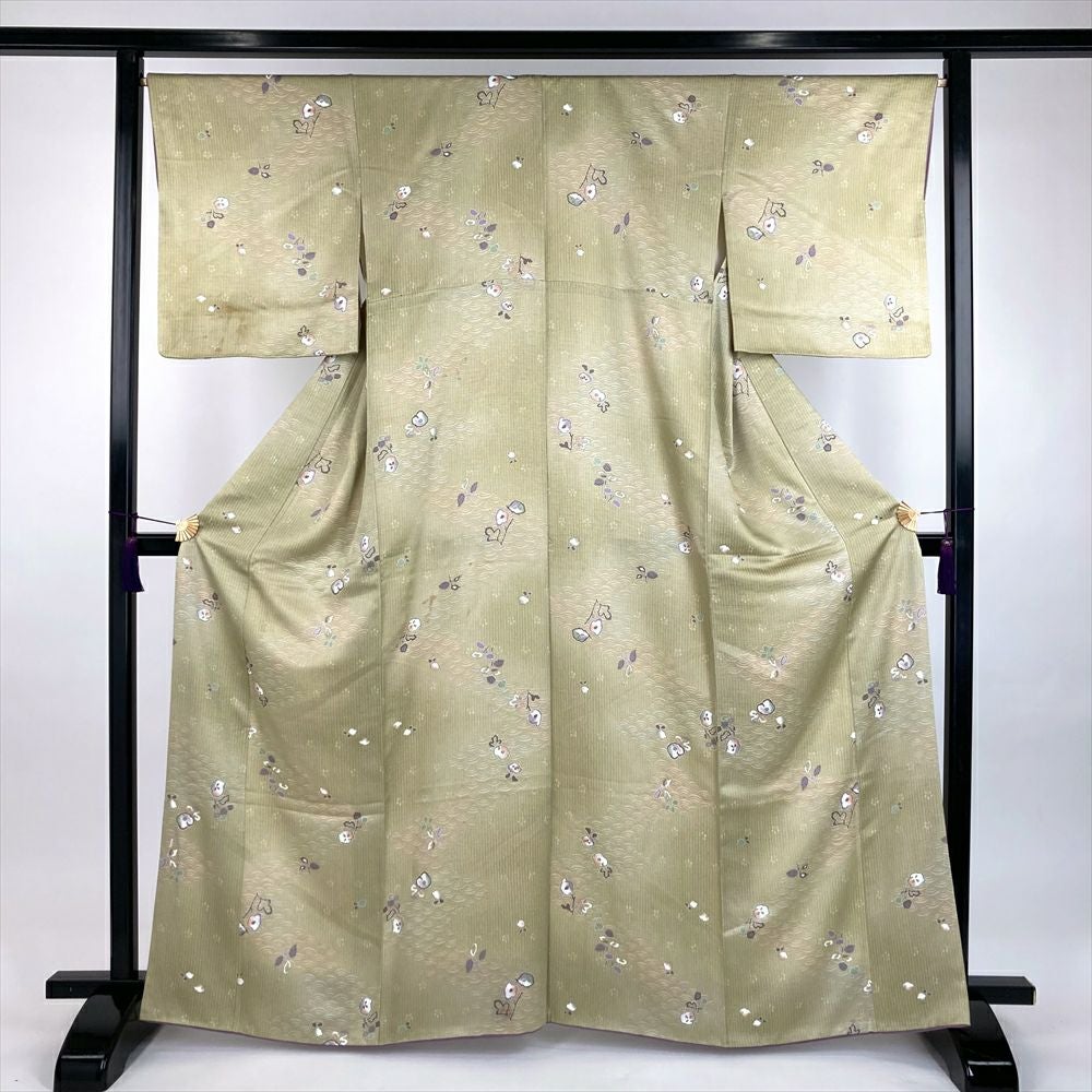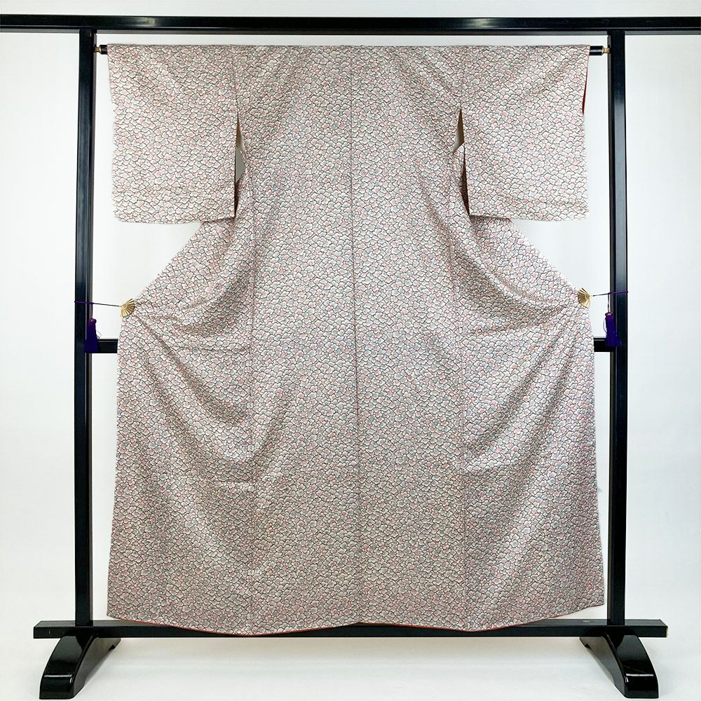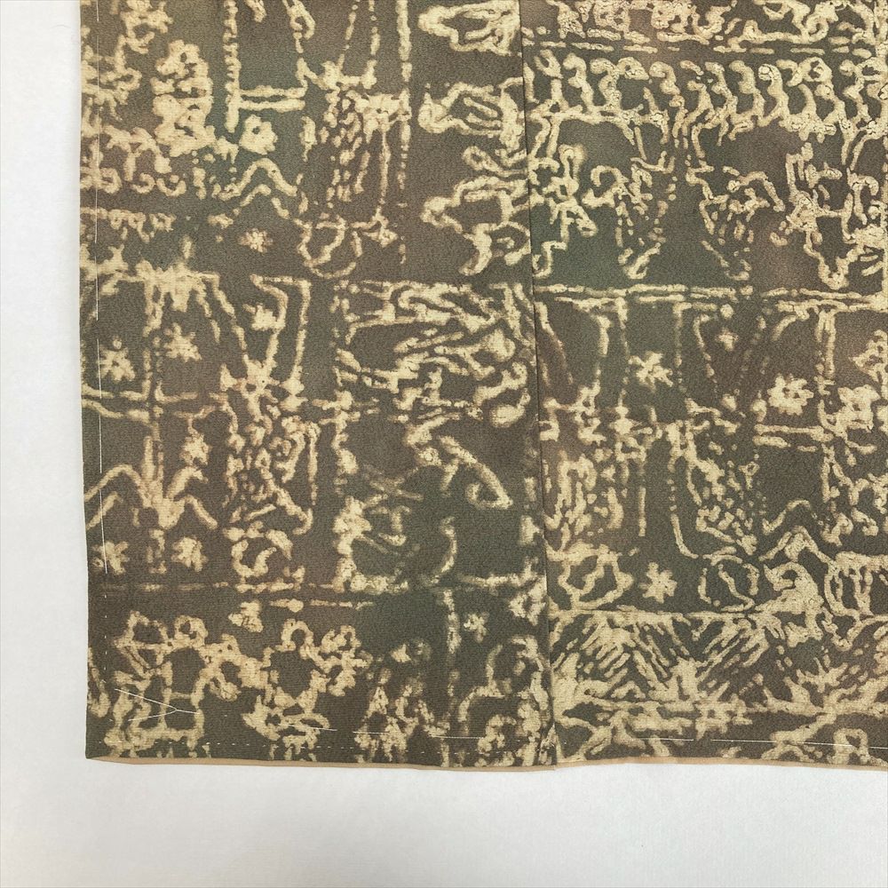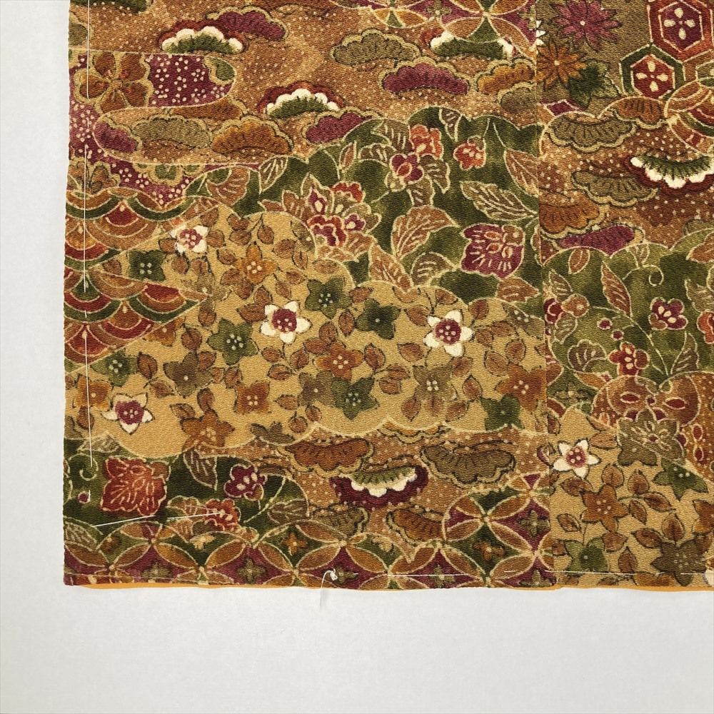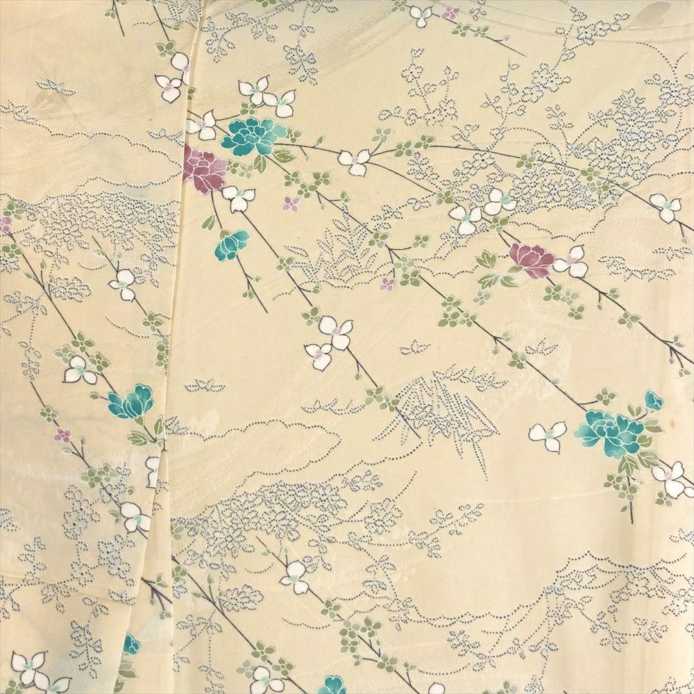 他の画像を見る (中古)小紋 ベージュ 黄色 緑 カジュアル ちりめん 染め 唐花唐草 吉祥文 オリエンタル 袷 SS【身丈】153cm【裄丈】66.5cm ¥ 16,500 税込 お気に入りに登録する