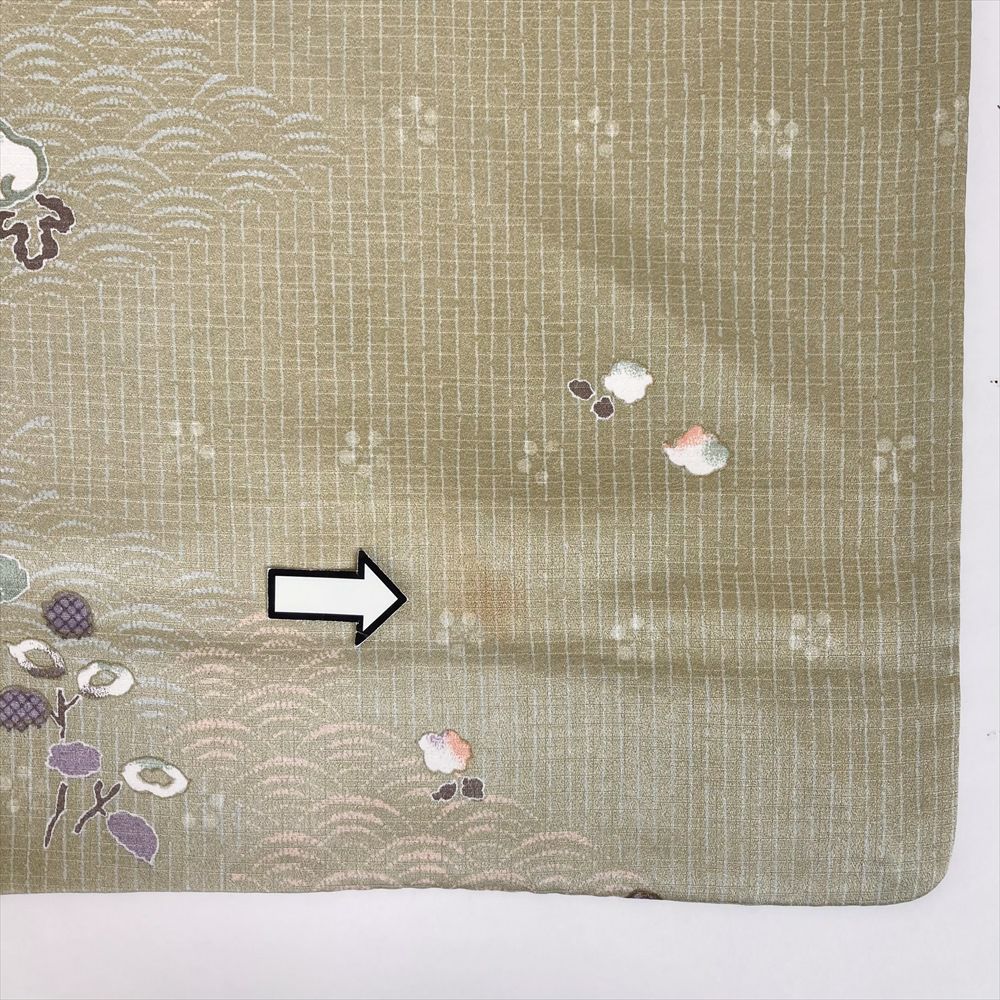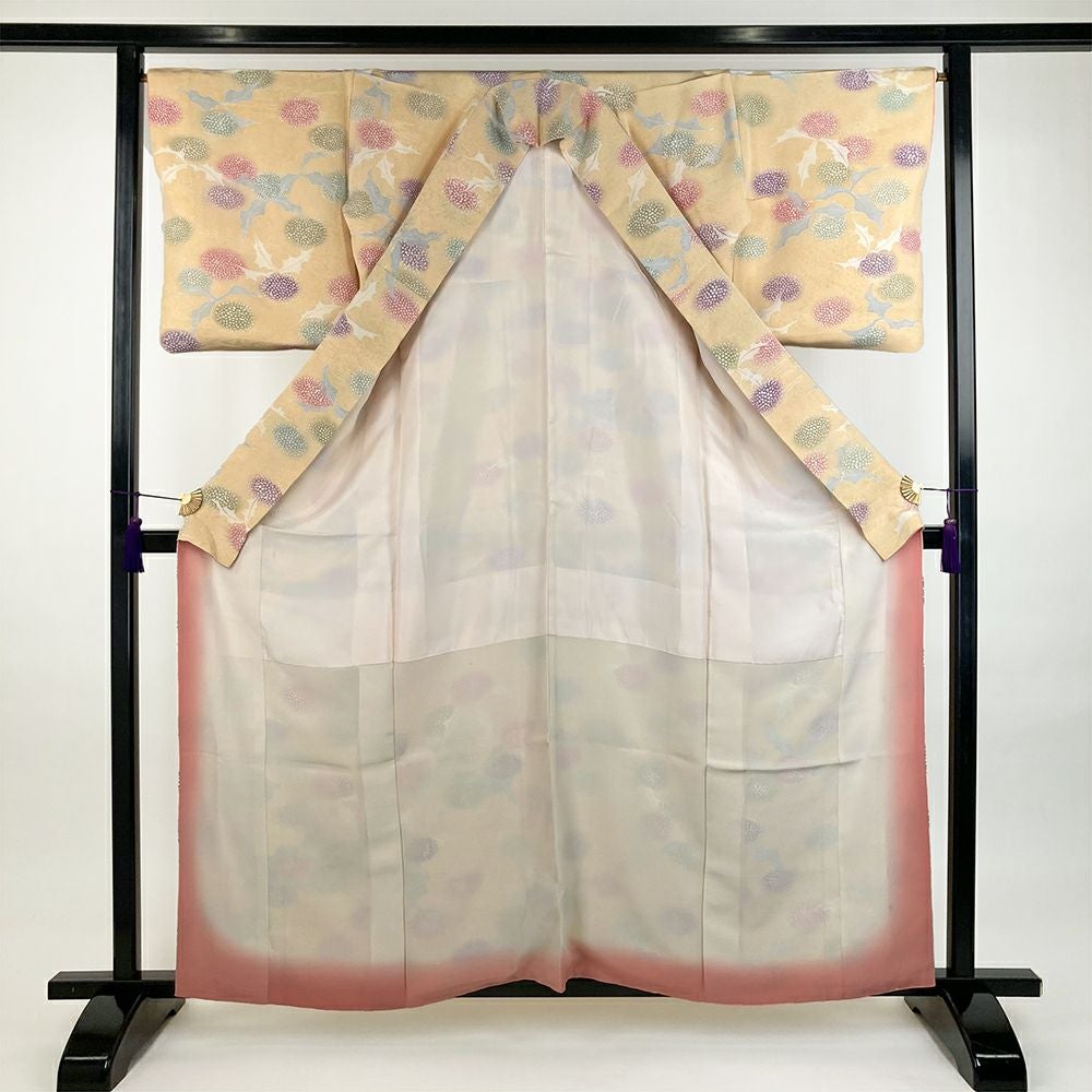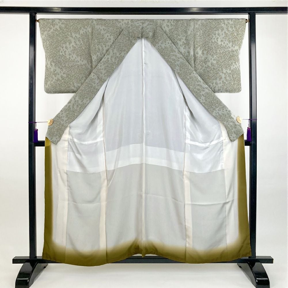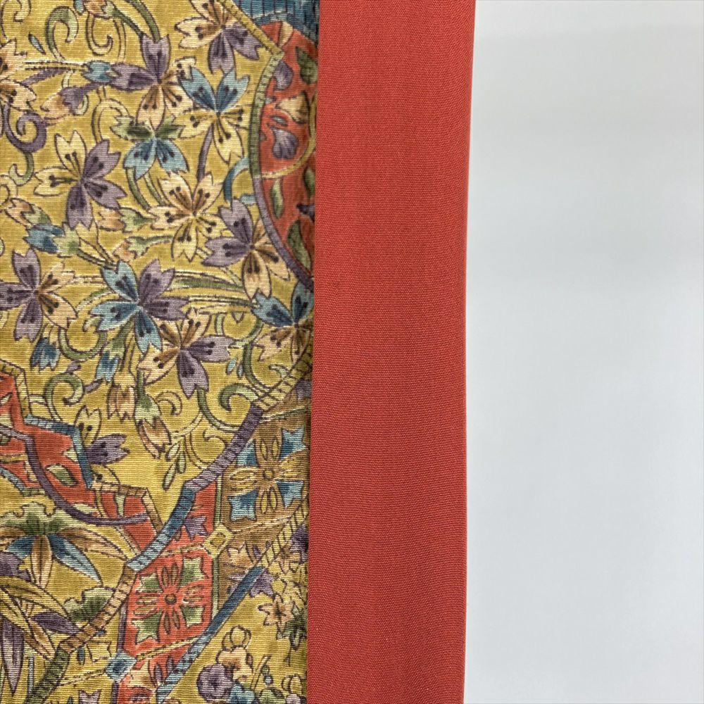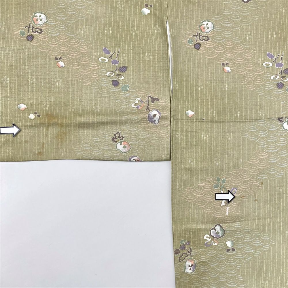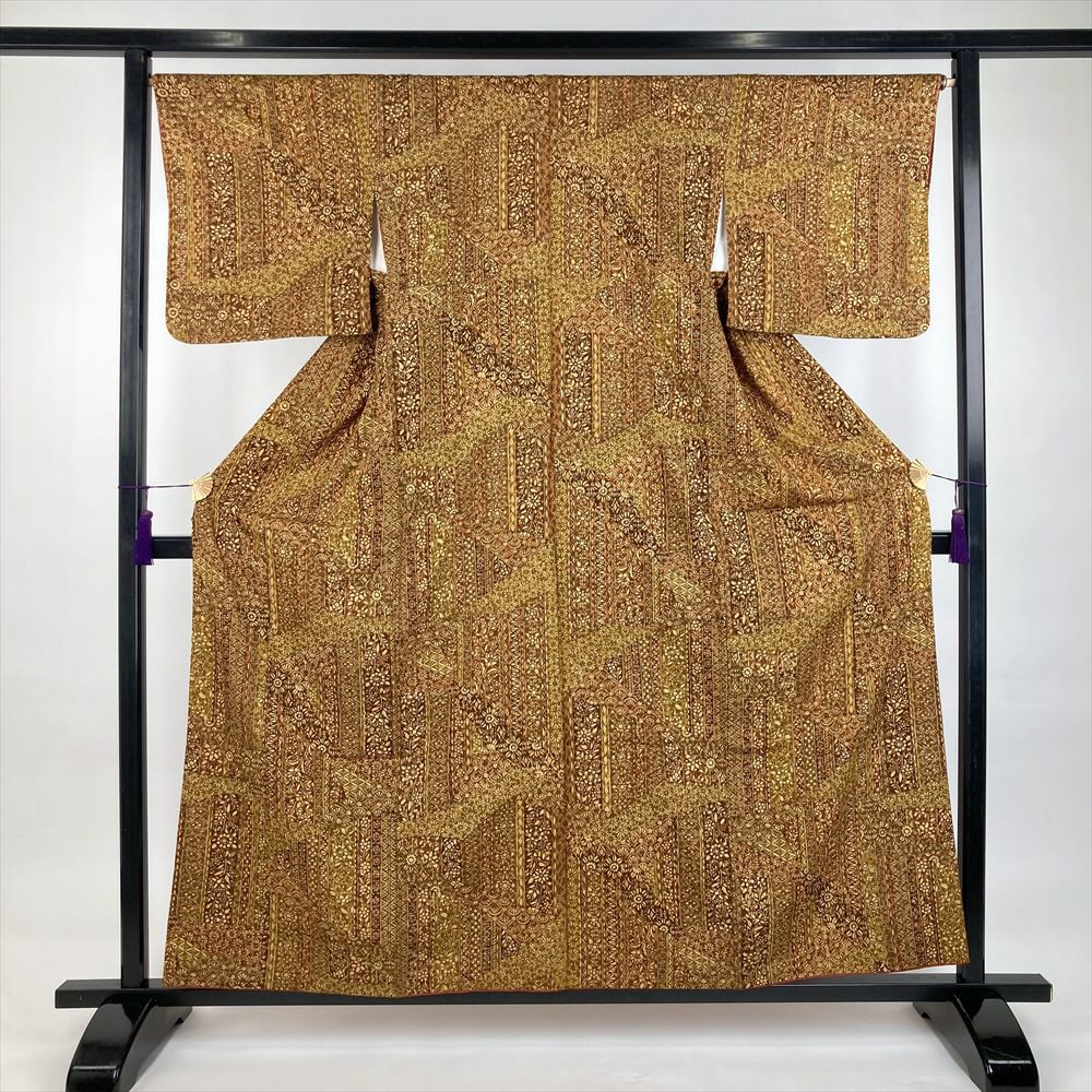 他の画像を見る (中古)小紋 ベージュ 黄色 緑 カジュアル ちりめん 染め 唐花唐草 吉祥文 オリエンタル 袷 SS【身丈】153cm【裄丈】66.5cm ¥ 16,500 税込 お気に入りに登録する