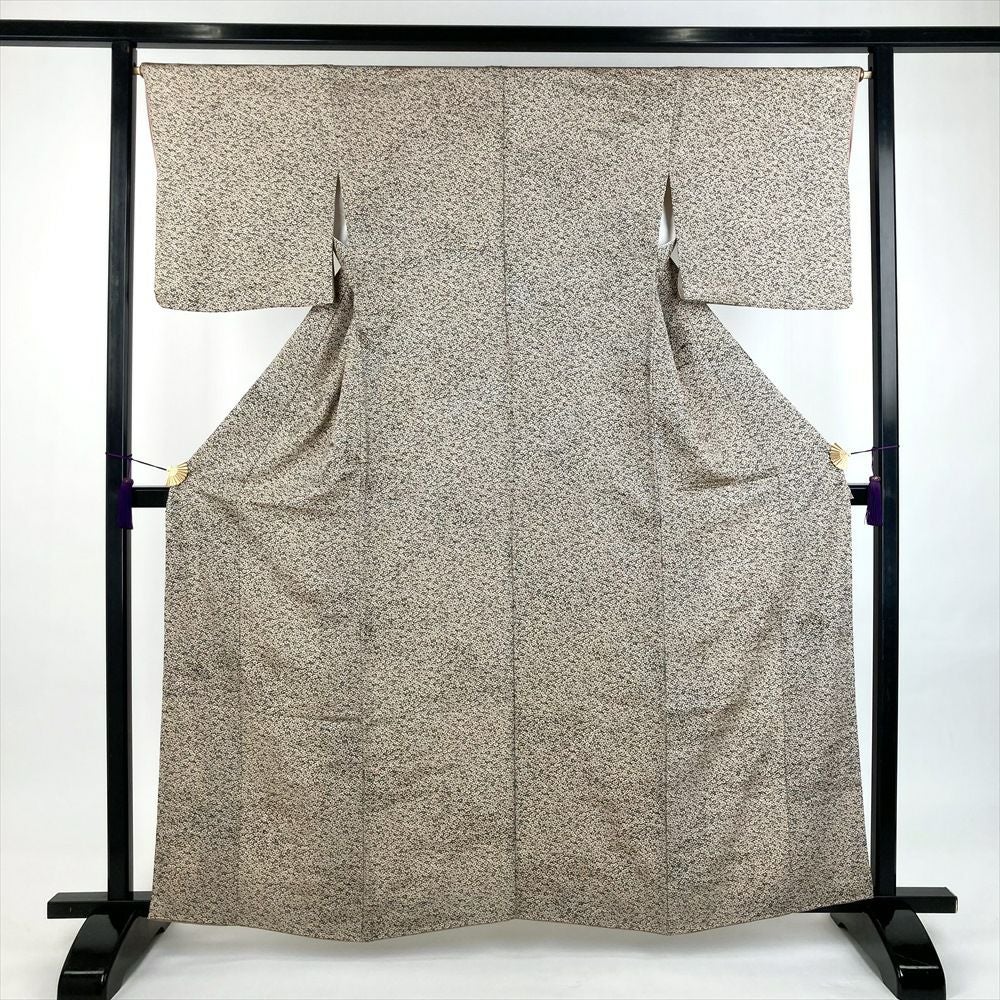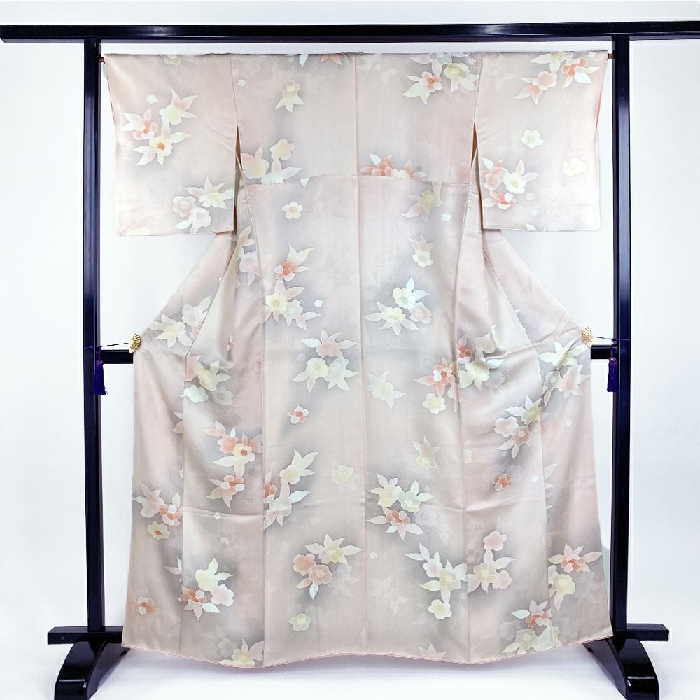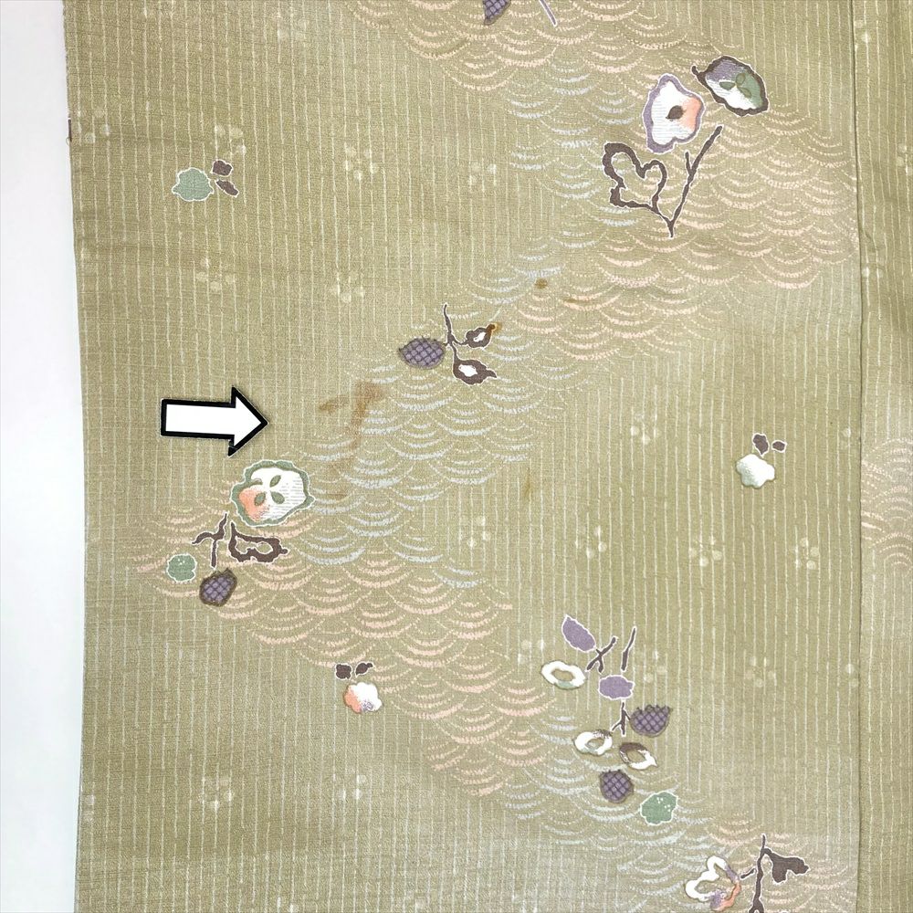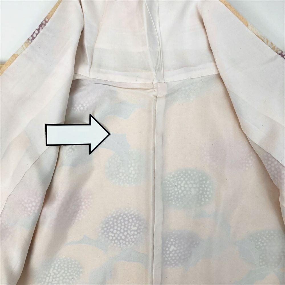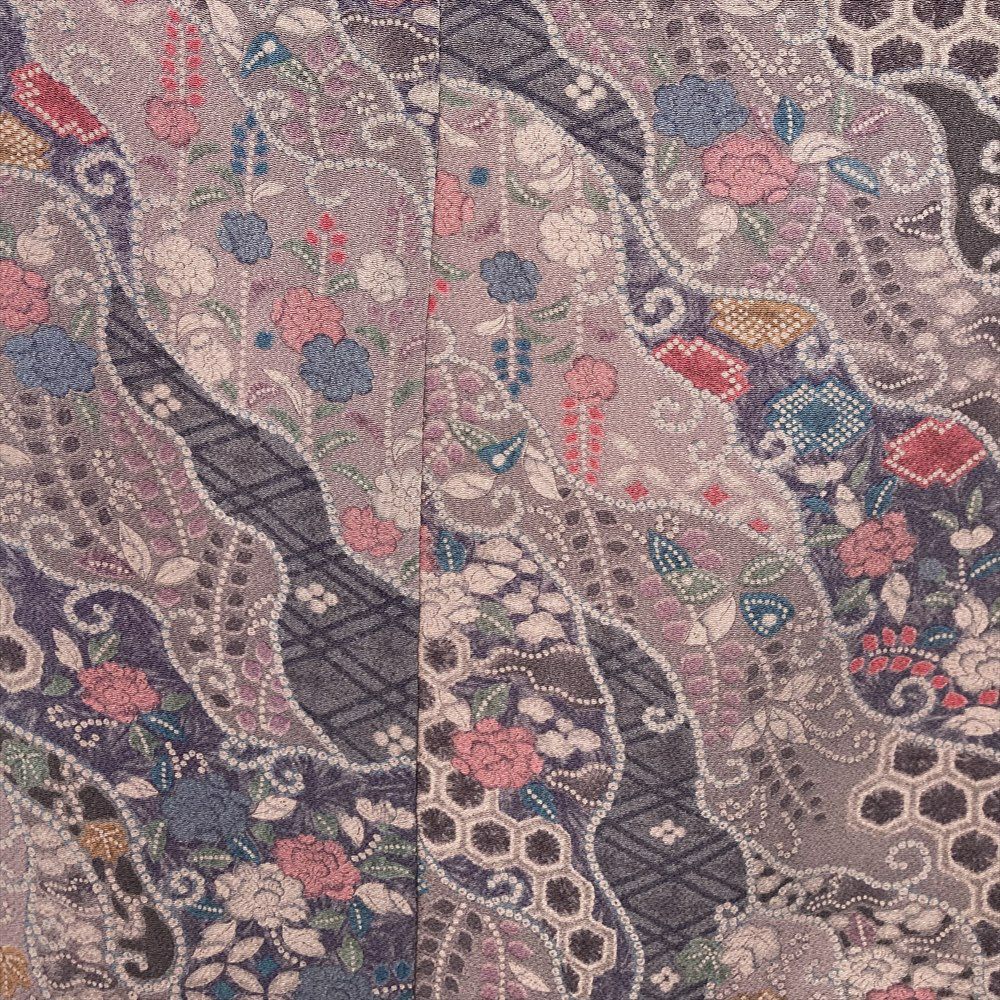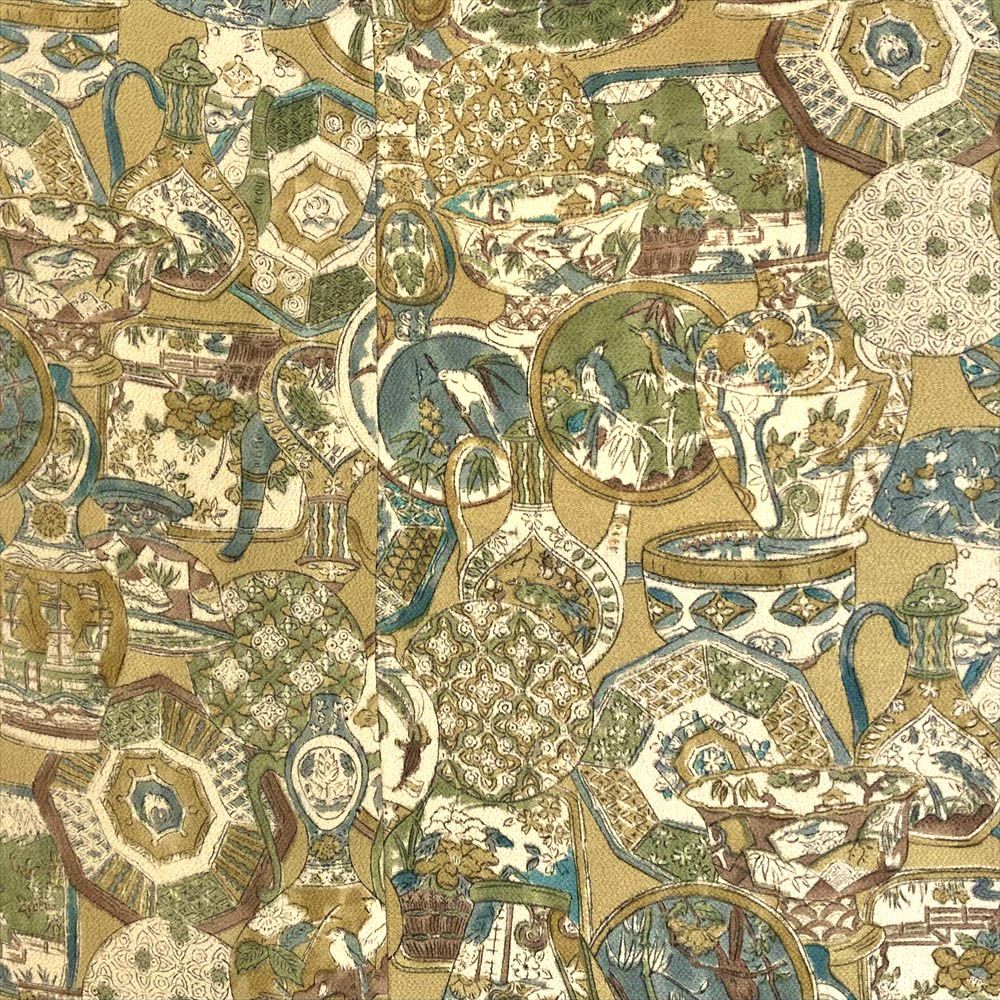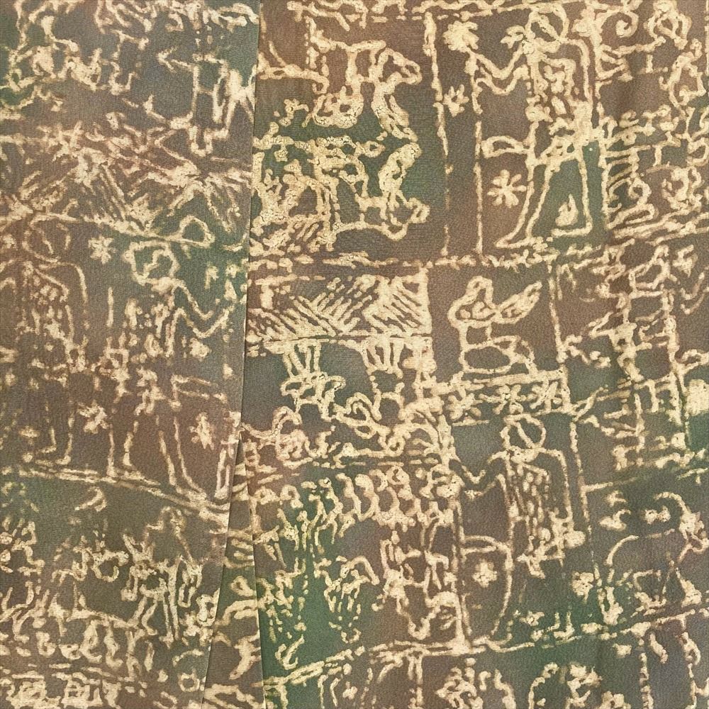他の画像を見る (中古)小紋 ベージュ 黄色 緑 カジュアル ちりめん 染め 唐花唐草 吉祥文 オリエンタル 袷 SS【身丈】153cm【裄丈】66.5cm ¥ 16,500 税込 お気に入りに登録する