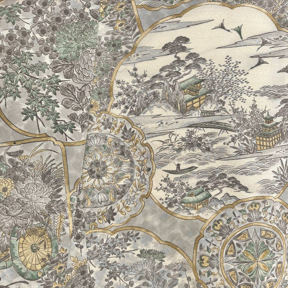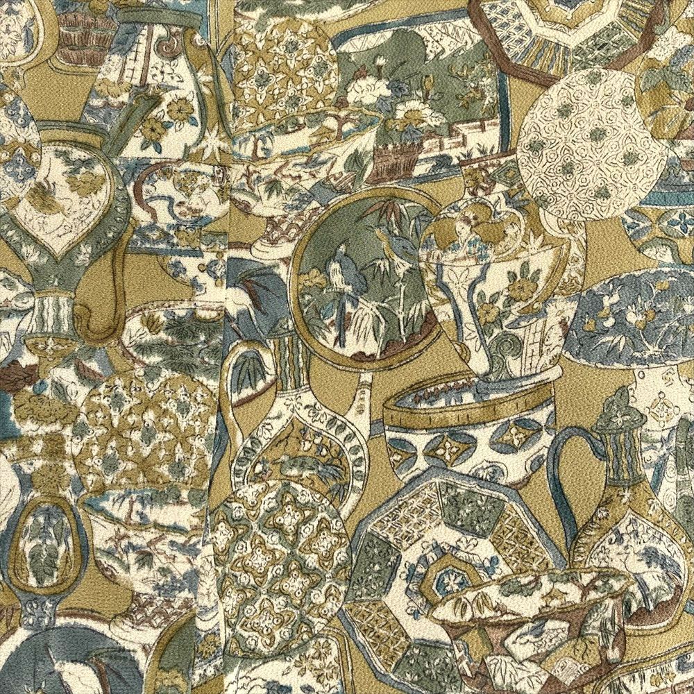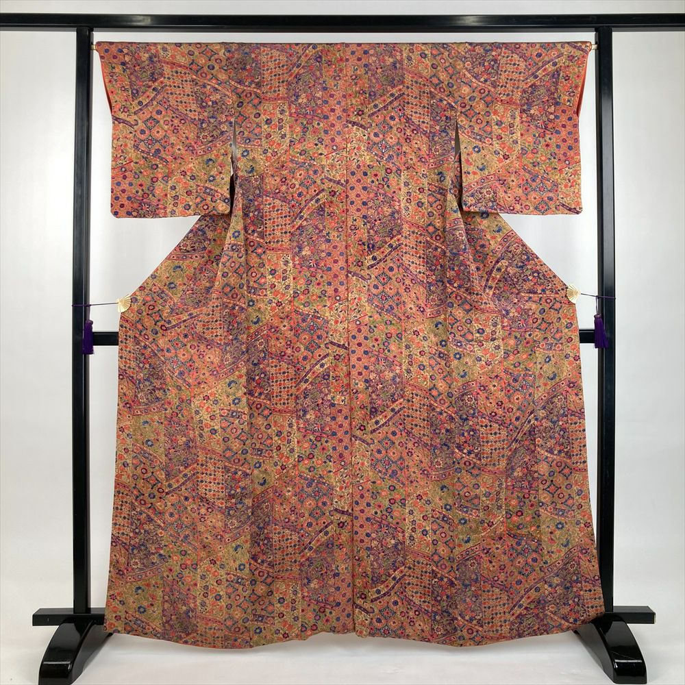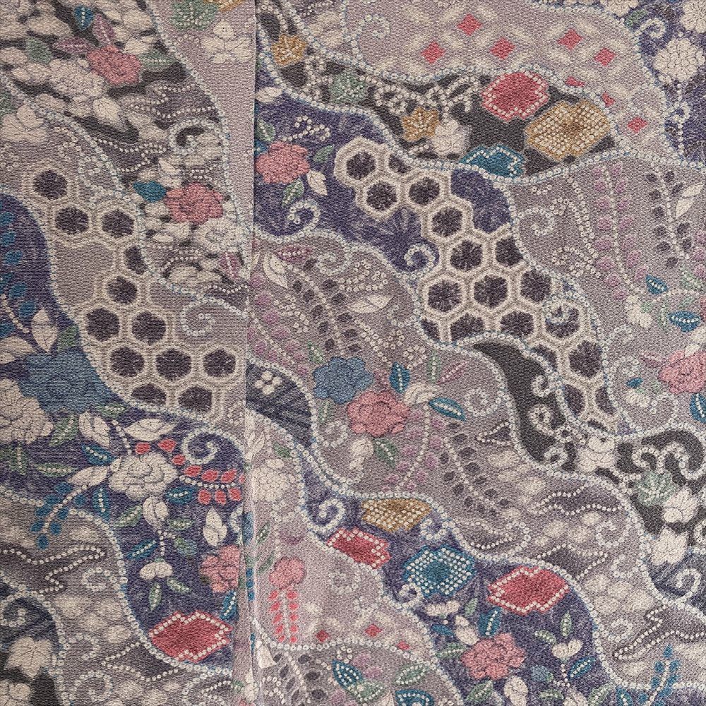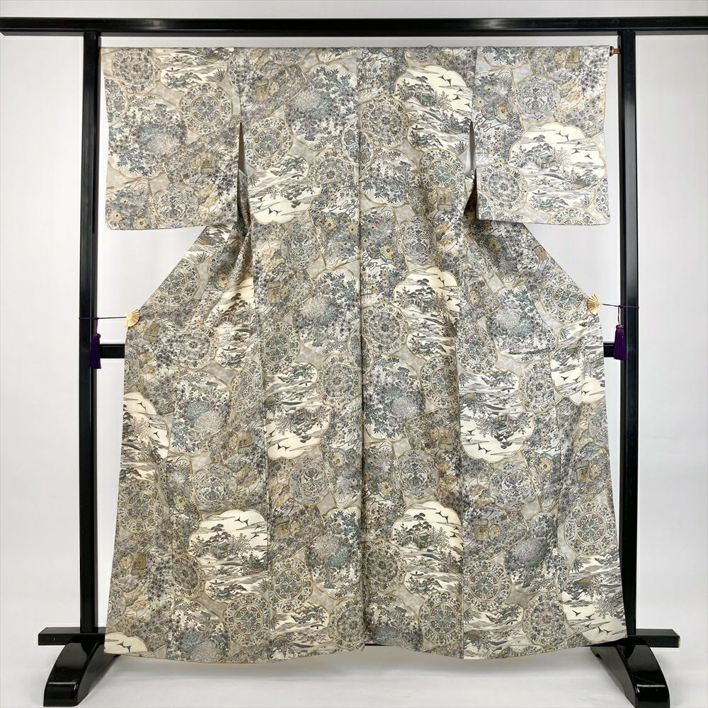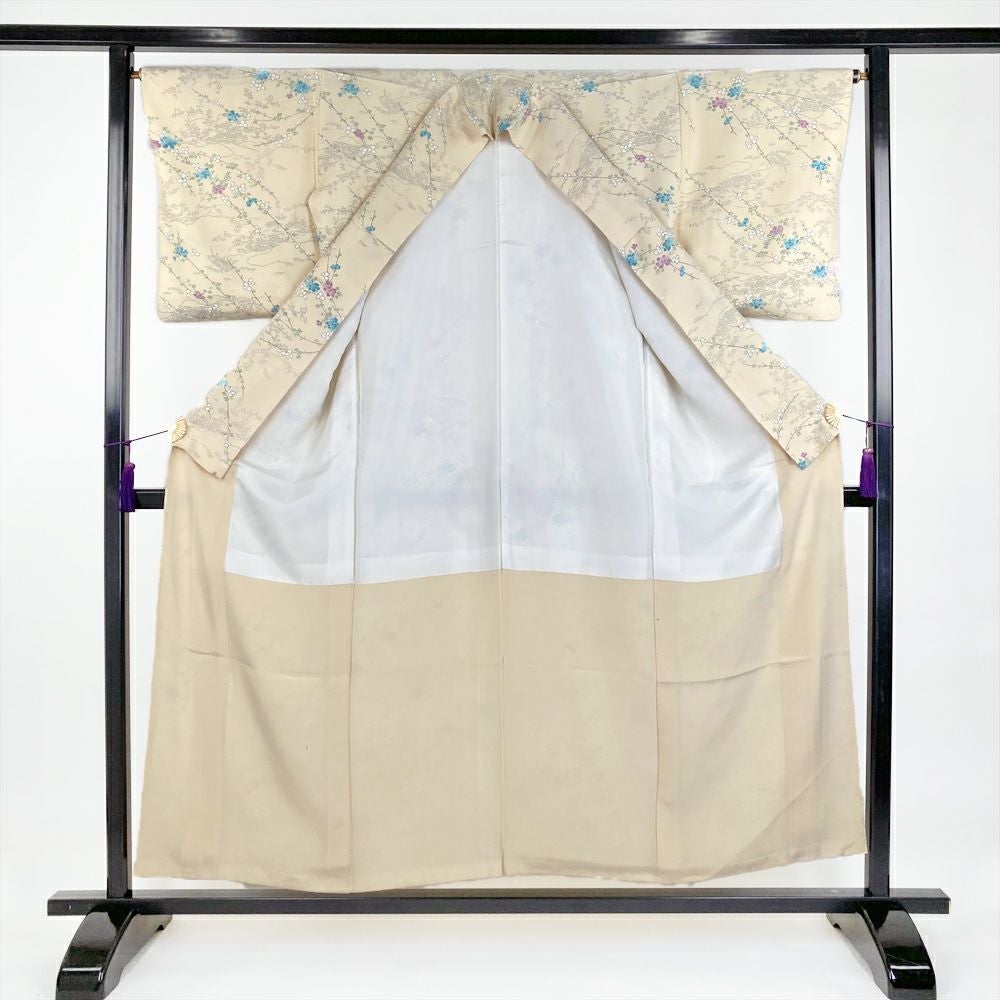 他の画像を見る (中古)小紋 ベージュ 黄色 緑 カジュアル ちりめん 染め 唐花唐草 吉祥文 オリエンタル 袷 SS【身丈】153cm【裄丈】66.5cm ¥ 16,500 税込 お気に入りに登録する