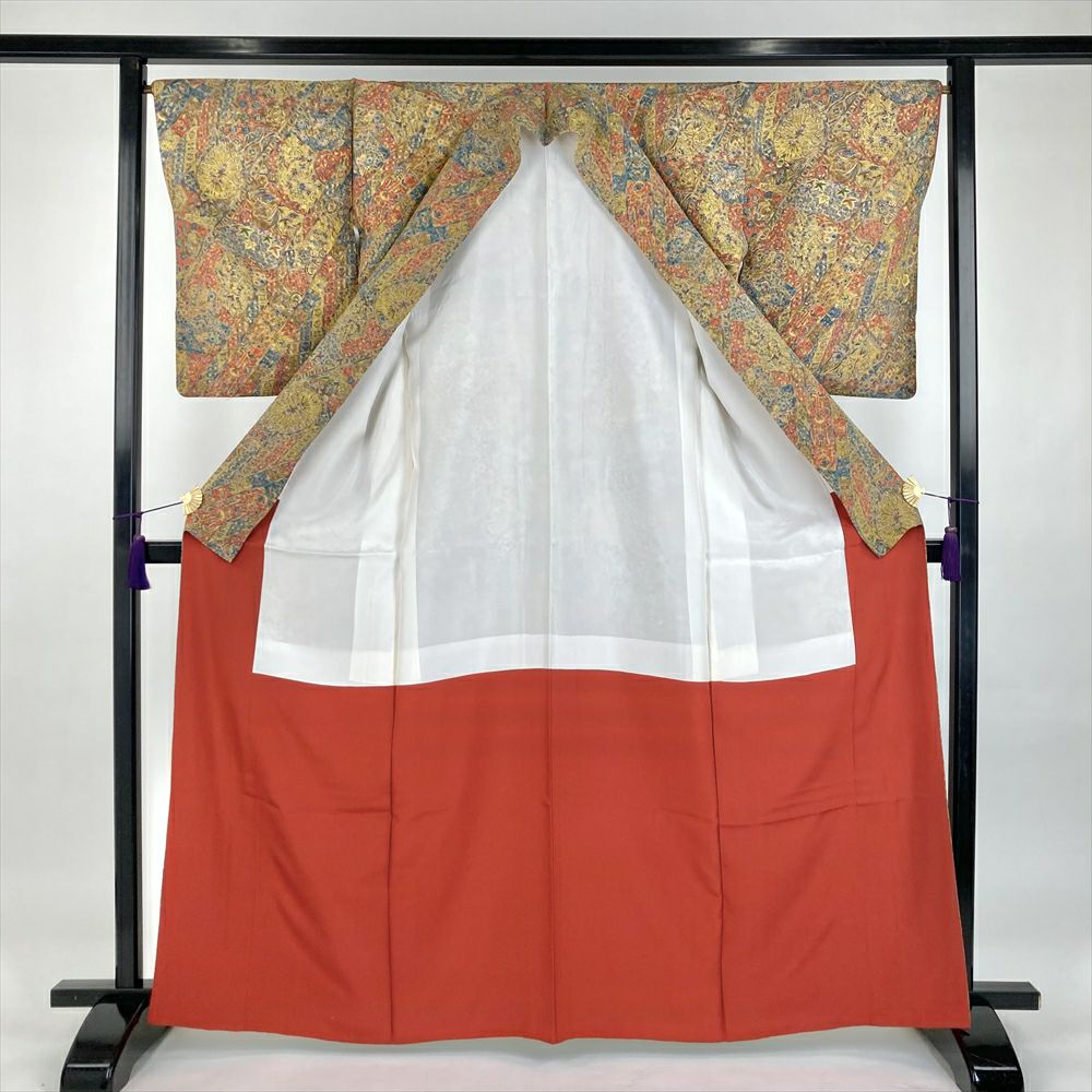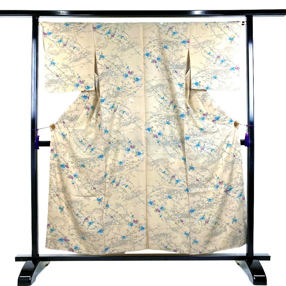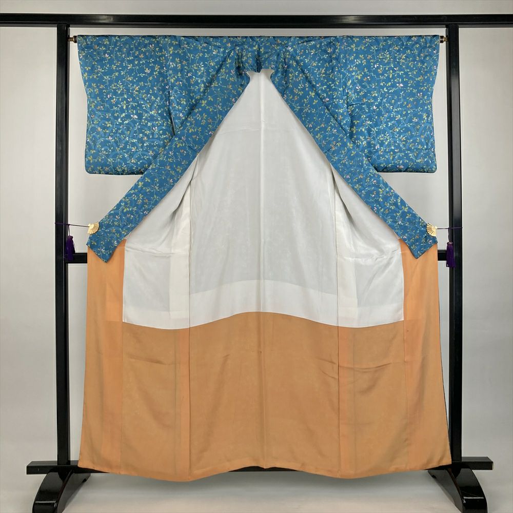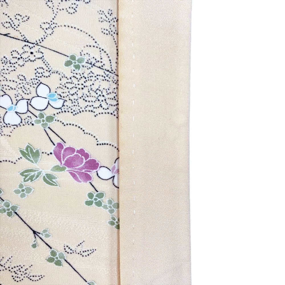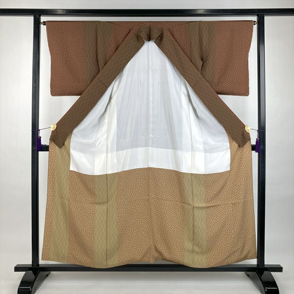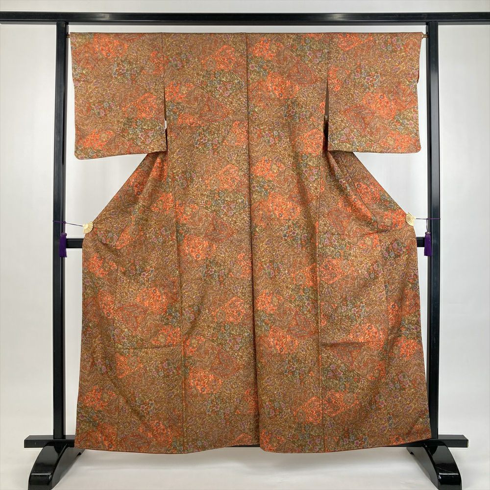 他の画像を見る (中古)小紋 ベージュ 黄色 緑 カジュアル ちりめん 染め 唐花唐草 吉祥文 オリエンタル 袷 SS【身丈】153cm【裄丈】66.5cm ¥ 16,500 税込 お気に入りに登録する